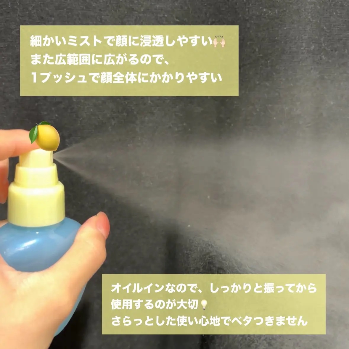 - ビタミン新配合!メイクの上からさっぱりと保湿できるひんやり美容液ミスト。 うるおいと自然なつやをあたえ、メイクしたての生つや肌をキープ。 長時間メイク崩れを防ぎます。みずみずしく心地よいシトラスフローラルの香り。