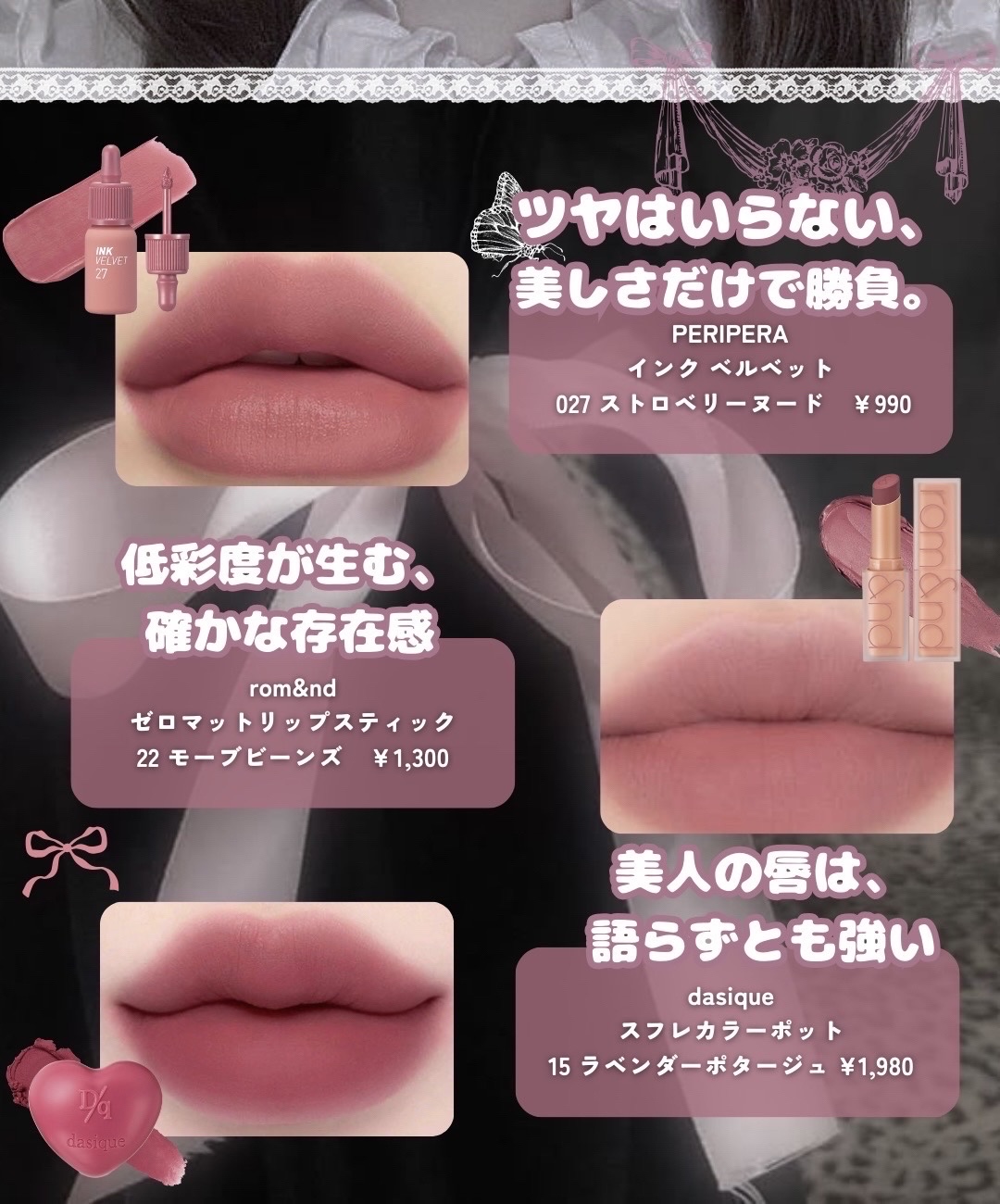 | なめらかな塗り心地で色鮮やかで透明感のあるカラー😊みずみずしさ、プルン感がとにかく可愛い💕 | 詳細を見る | |