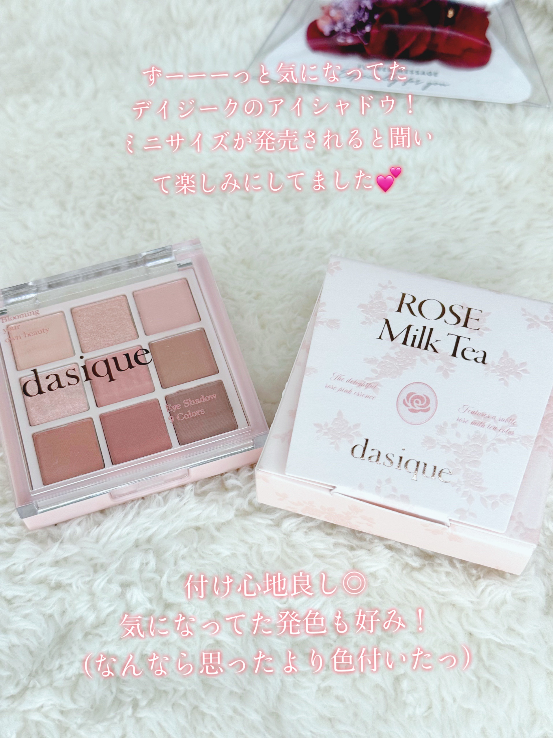 dasiqueのミニパレット🎨dasique ミニシャドウパレット ローズミルクティーQoo10にて購入しました☺️💗特徴💗・くすみローズ×ミルキーベージュの甘すぎない大人可愛い配色・マット・シマー・グリッターの 異なる質感が1パレットに凝縮...