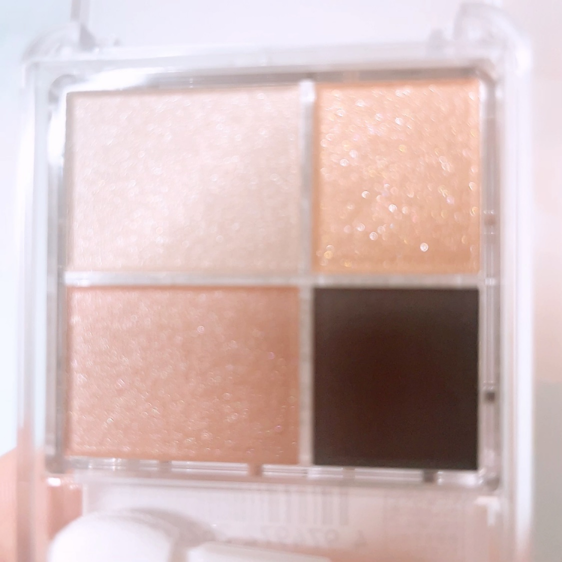 4つの異なる質感が楽しめる、多質感アイシャドウパレット!「透け感ベース・繊細パール・グリッター・マット」の4つの質感がひとつに入ったパレットです 〈抜け感ツヤ仕上げ〉 ツヤのある華やかさのある仕上がり グリッターのツヤ感が良かった☺️ 〈奥行きマット仕上げ〉 大人っぽい上品な仕上がり 落ちついた感じでお仕事メイクに◎