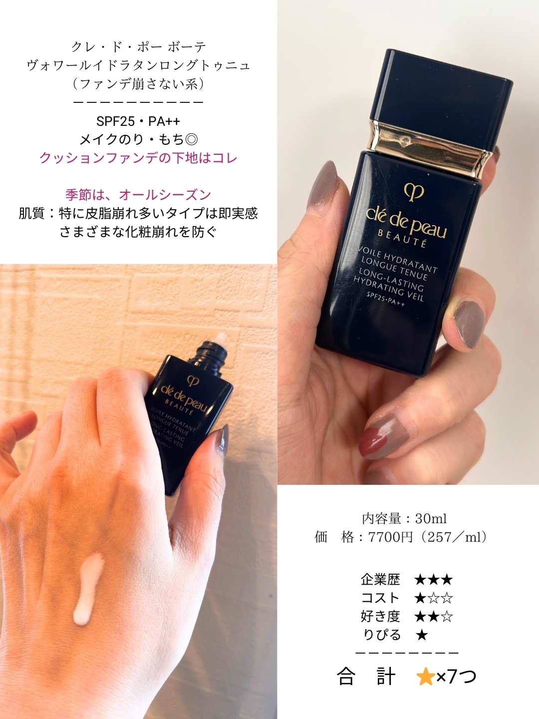 クレ・ド・ポーボーテの下地、4種類比較!値上げ前に是非🏃・ヴォワールコレクチュールn・ヴォワールマティフィアンリサン・ヴォワールイドラタンロングトゥニュ・ヴォワールルミヌ※コレクチュールnのみパケが限定時のものです。中身は同じです。全て指塗り...