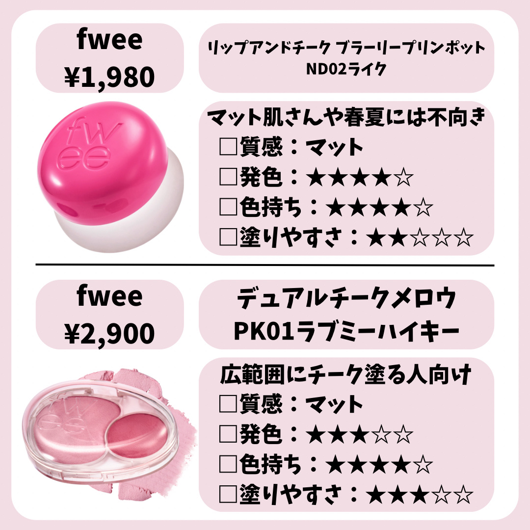 おすすめアイテムfwee×ジェル・クリームチーク