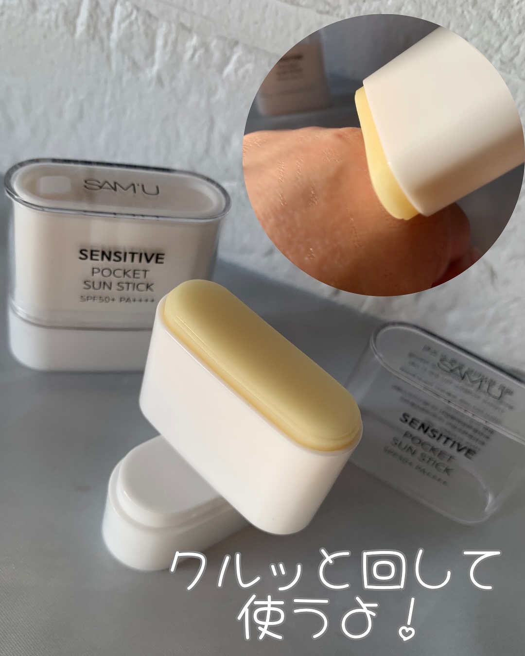 *SAM'U☀️センシティブポケットサンスティックミニサイズの日焼け止めスティック🪄ポケットや小さめのポーチにも入れられるサイズ感で、持ち運びにとても便利🫰🏻外出中も紫外線が気になるタイミングでこまめに塗り直しができます😎✨️2つに分かれるハ...