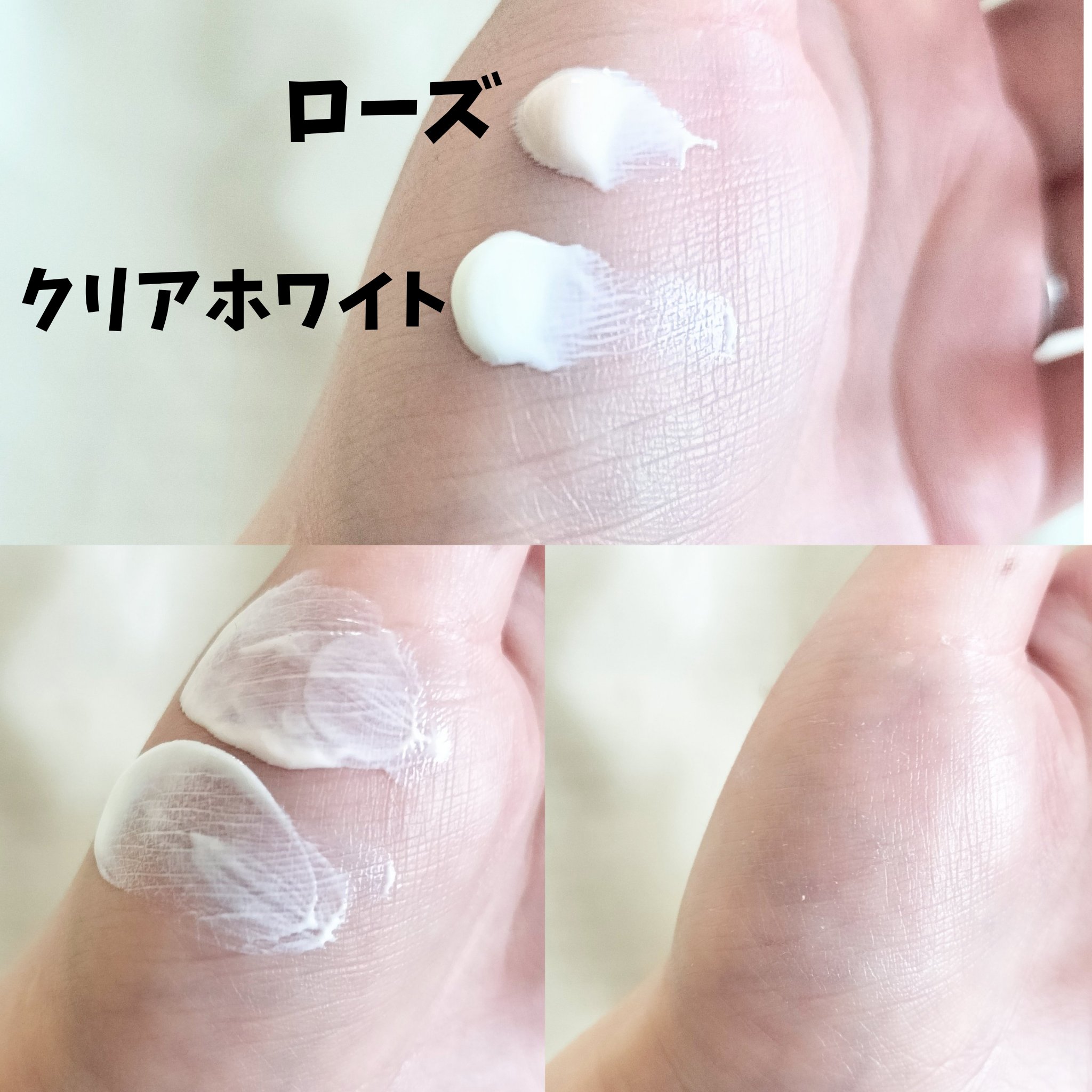 顔にのせたばかりの時は色の違いはありますが、全顔に伸ばすと正直ほとんど色の差は感じません。 トーンアップ 明るさと透明感をプラス。3種類の中では一番トーンアップ高め。 トーンアップローズ 透明感と血色感をプラス。トーンアップより、ナチュラルな仕上がり。 トーンアップクリア こちらが既存の2色に加えて新しく出たタイプ。ベタつきやテカリを抑えながらトーンアップをしてくれるタイプ。長時間さらさら!というほどではないので、乾燥肌の私でも、夏場のベタつきが気になるときに使えそう。クリアという名前ですが、トーンアップはあり。顔の白浮きが気になるときに、首に塗るのも良さそう👏