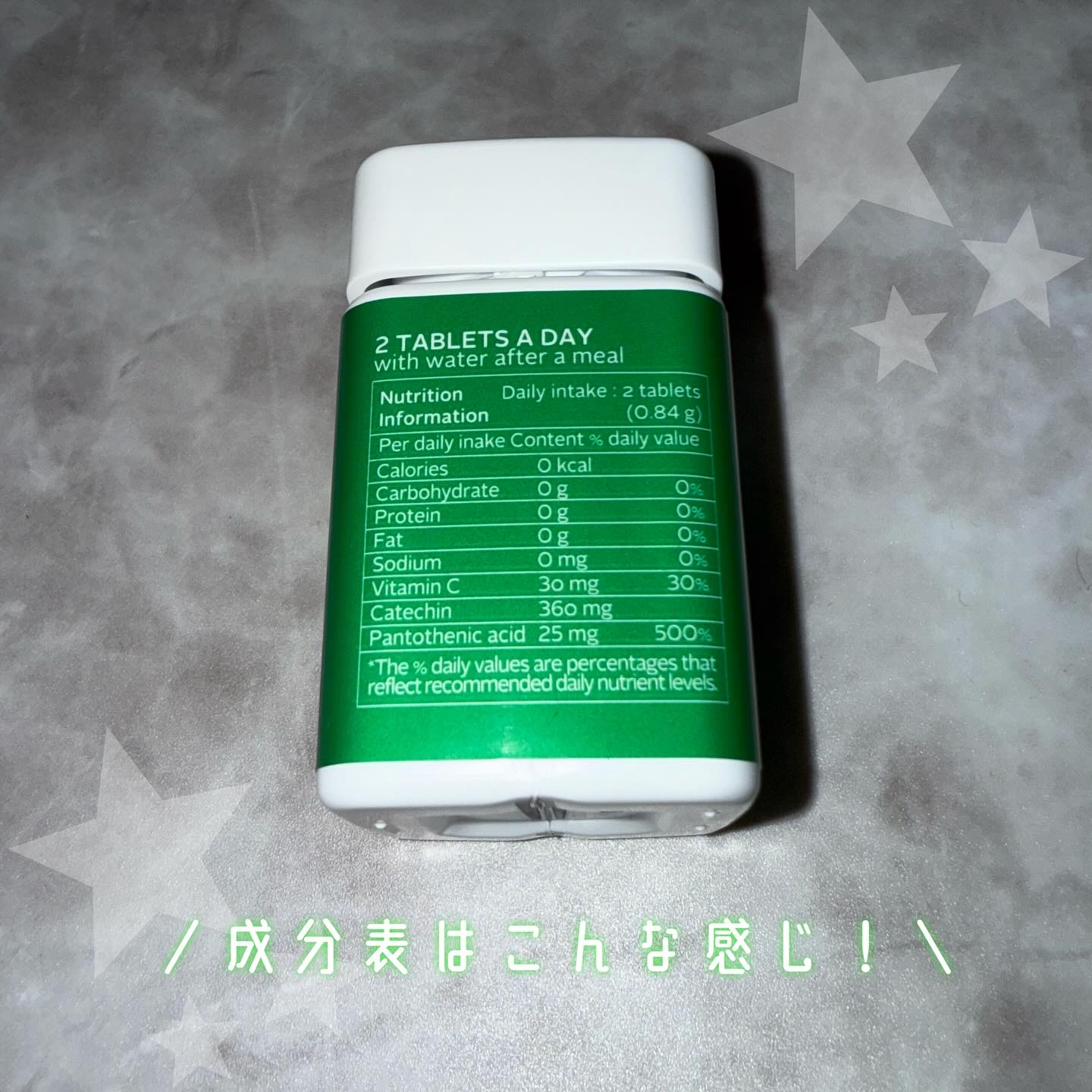 体脂肪の減少を手伝ってくれる緑茶カテキン高配合されているため、食事後の脂肪の吸収を抑えて、排出を手伝ってくれる商品🍵 サプリに腸溶性コーティングがされているので、口の中で溶けたりしません。サラサラとした表面で大きさもちょうど良いので喉に引っかからずすごく飲みやすい。 飲むのも1日2粒なので、私は朝晩と分けているし、こういう面でも飲みやすく感じています。