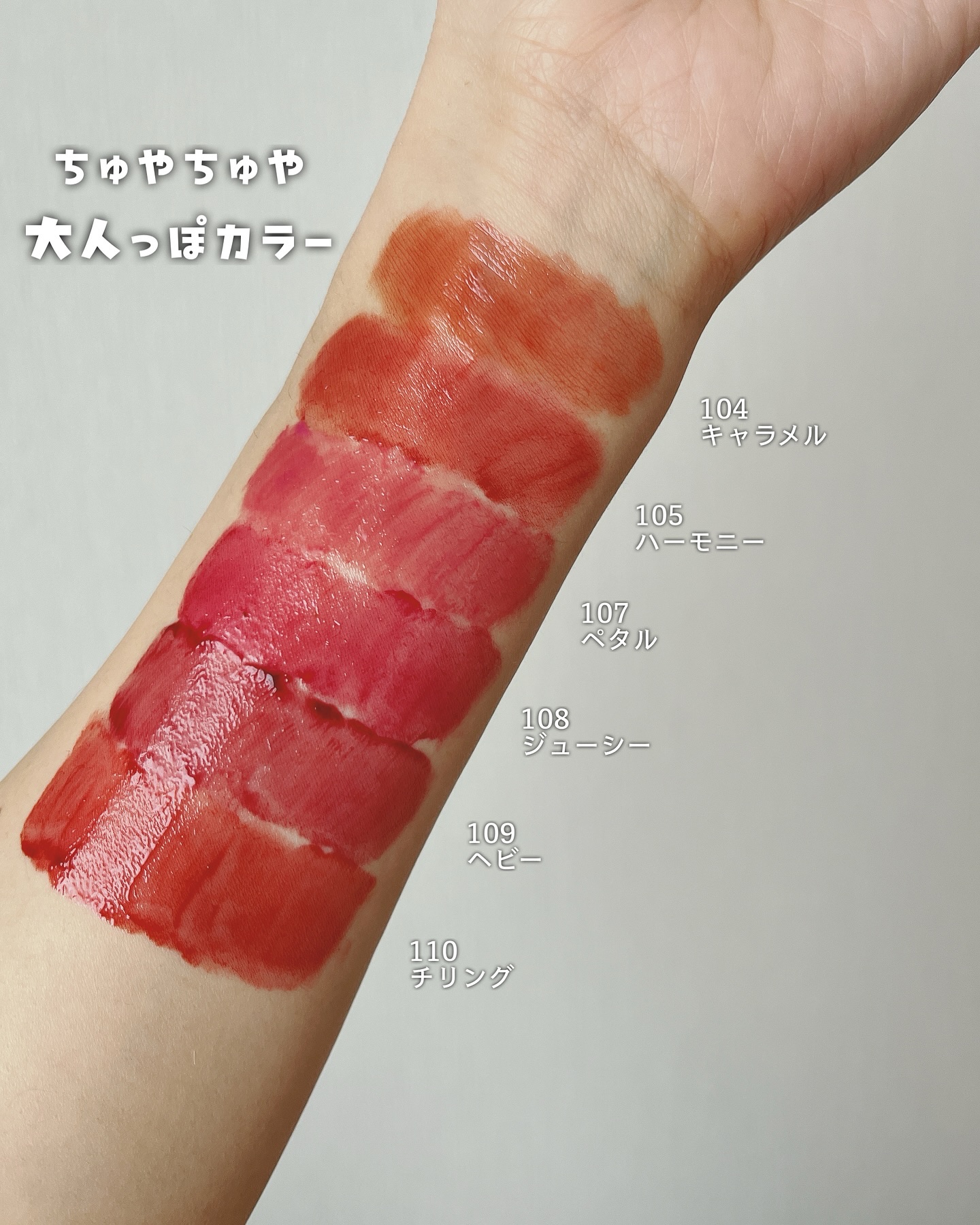 | 中身はゼリーみたいなテクスチャーで ぷるんとしたツヤタイプのティント。 | 詳細を見る | |