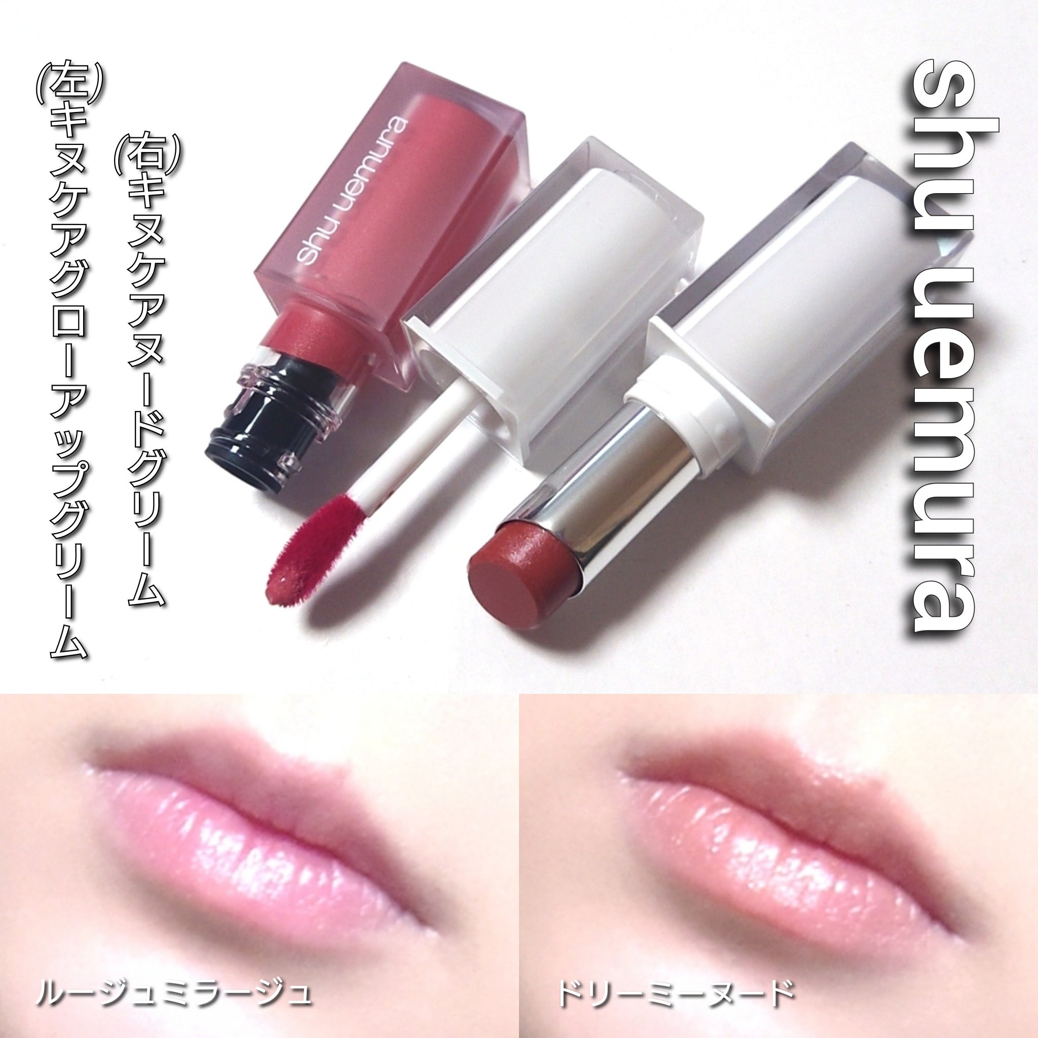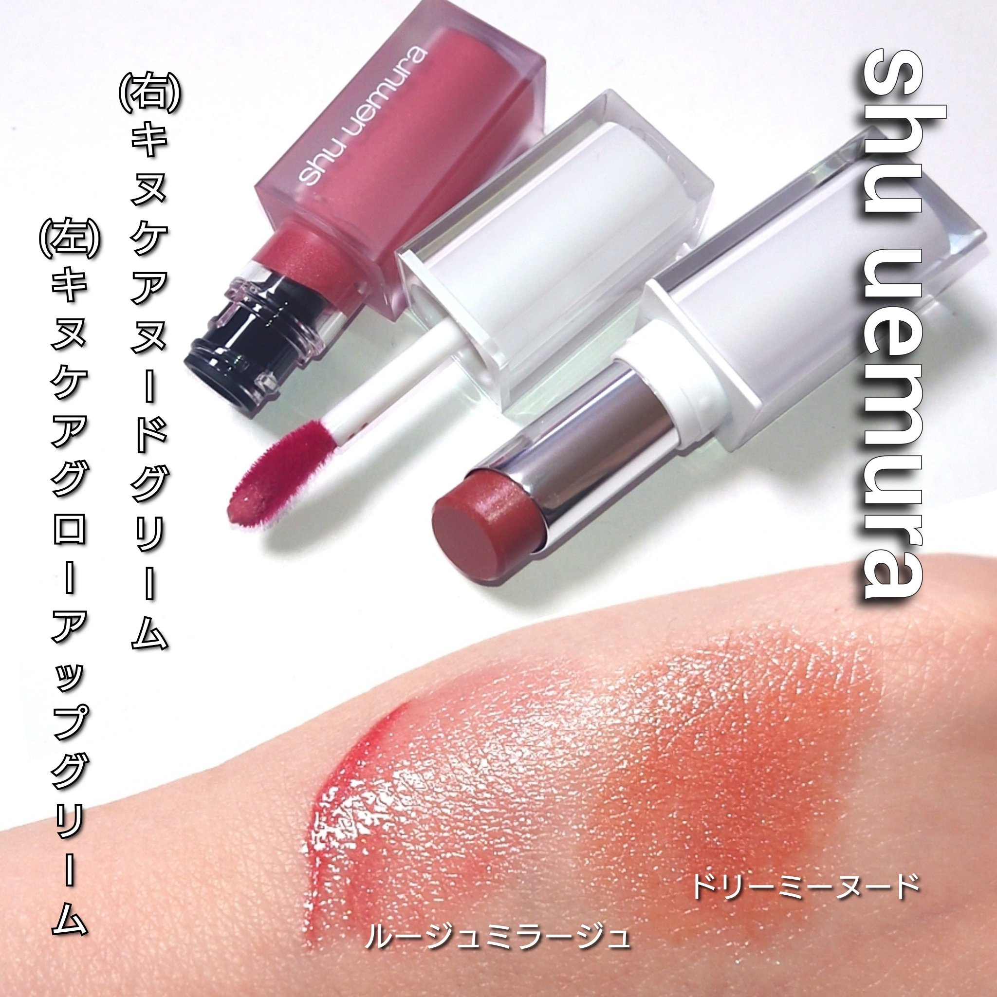\4月11日発売.ᐟ.ᐟ/"濡れツヤパール配合"🫧LIPSでも高評価のバズリップ「キヌケアシリーズ」から新製品が登場𖤐´-▶︎shuuemuraキヌケアヌードグリームBG975Gドリーミーヌードくちびるから創る透明感演出。レフ板リップで顔色...