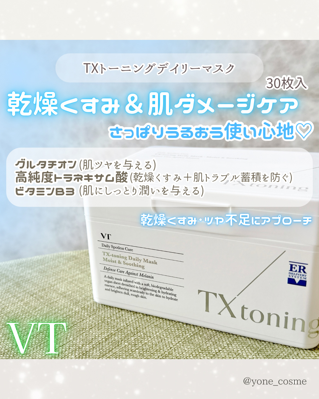 VTCICAデイリースージングマスクTXトーニングデイリーマスク毎回まとめ買いしている大好きなパックです😻⭐️CICAデイリースージングマスク人気なだけあってとってもいい!シートが分厚くて、保湿効果ありそうです🥹若干匂いがありますが、気になら...
