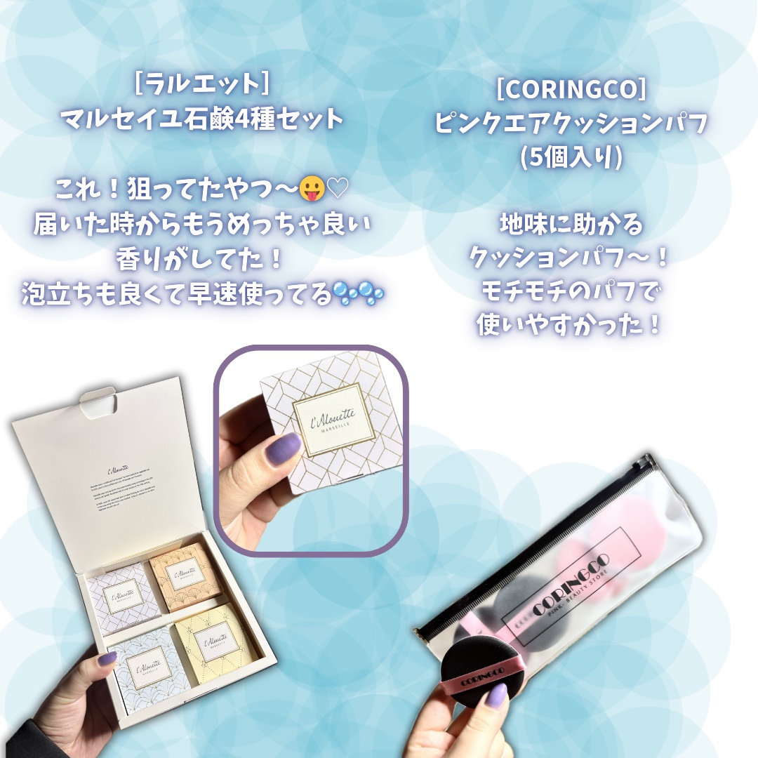 1回1,000円で回せる新感覚のガチャアプリ✨ 1,000円でハイブランド品や美容家電、韓国のトレンドコスメなどをガチャしてゲットできるアプリです! 配送されて箱を開けたらびっくり!おまけが3つも入っていました🌷 招待した本人とお友達にそれぞれ100円クーポンが支給されます!