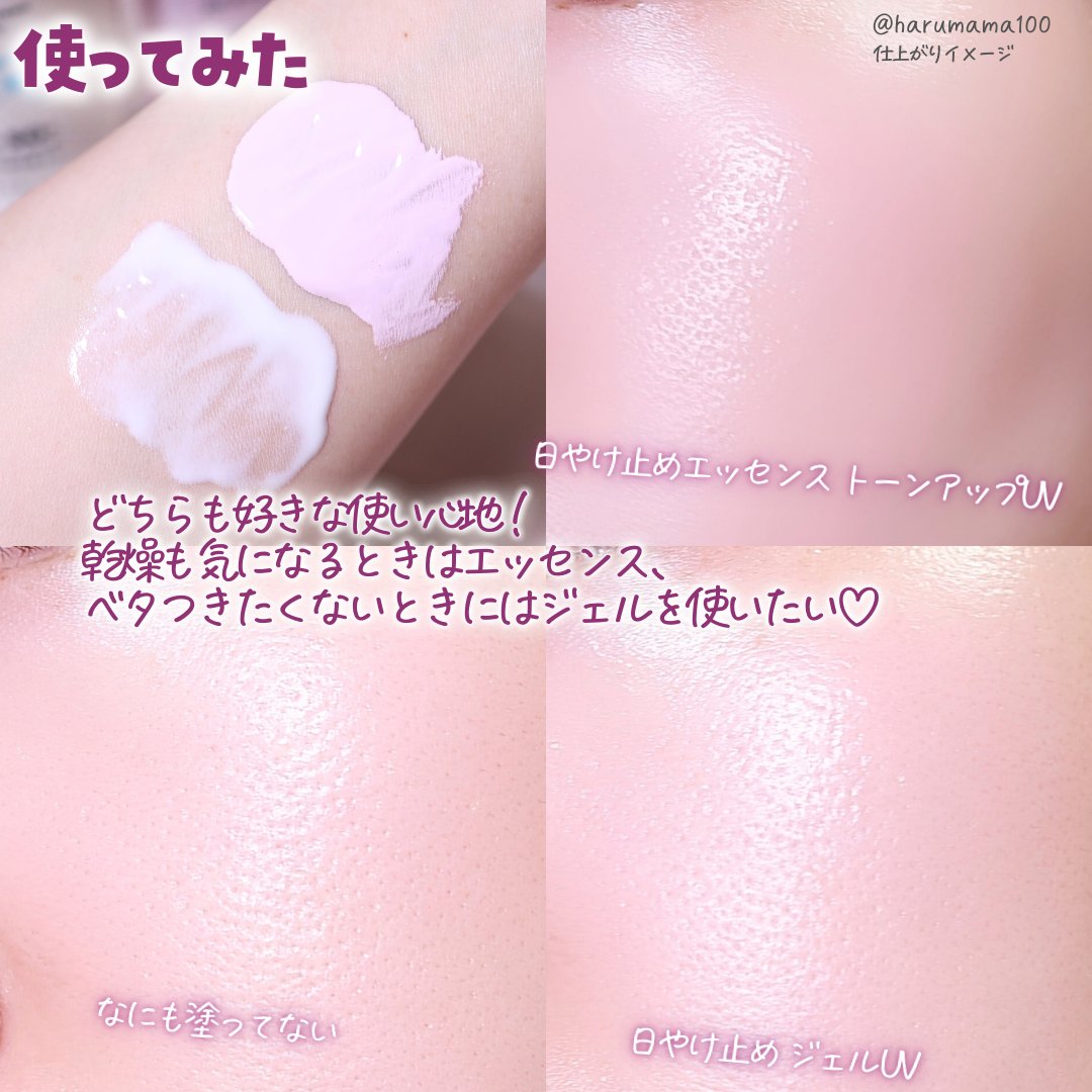どっちも良さそうでどっちにしようかすごく悩みますね…🤔 ここからの時期だと露出が増えるので顔と首辺りまではトーンアップで綺麗に見せて、全身は伸びのいいジェルタイプでっていう使い分けもありですね✨