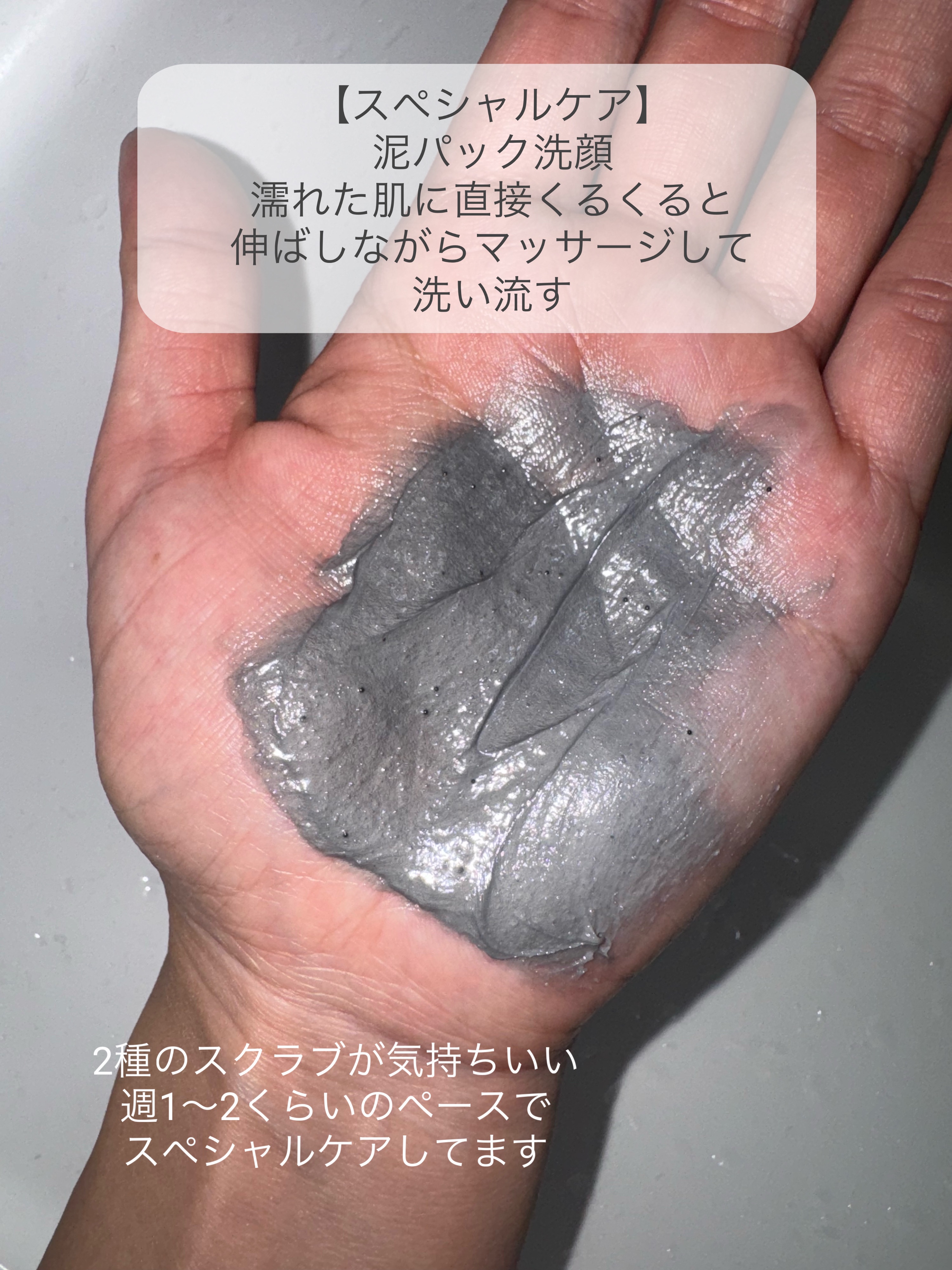 | 泥ペーストに、スクラブがザクザク でも水を足して泡立てると濃密ふわふわ泡… | 詳細を見る | |