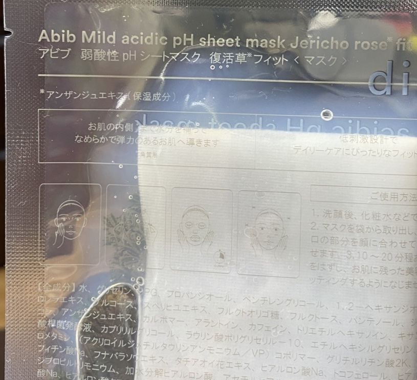Abib弱酸性PHシートマスク復活草フィット初めて使ったパック保湿系のパックで使い心地が良かった肌荒れしている肌に使っても刺激がなく使えた1枚は高いけど特に乾燥が気になるときに特別ケアとして使っています。このパックは、シリーズがたくさんある...