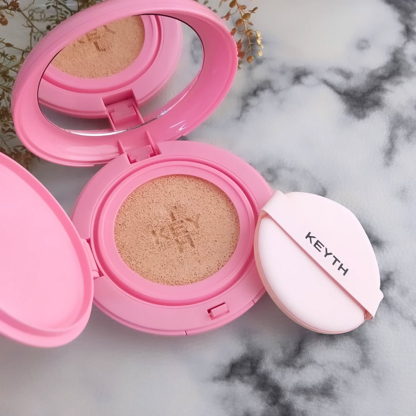◯株式会社サンスマイルから商品提供を頂きました◯【KEYTHピンクマグネットクッション】を使わせて頂きました。保水力の高い複数の糖*1を配合することで、肌にさらっとした水分をもたらし重ねるほどツヤのある肌になるそうです。パフがしずくの形をして...