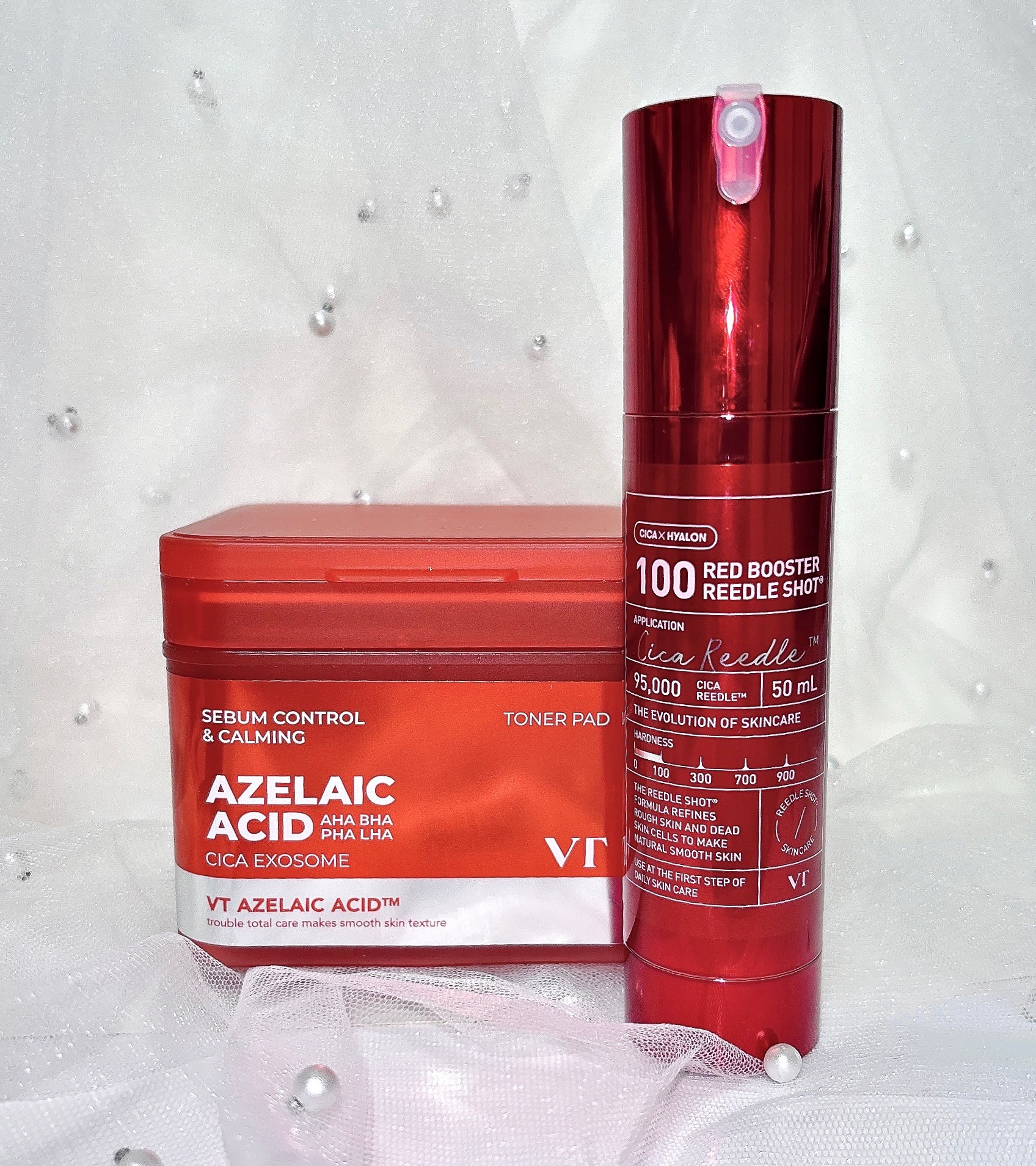 ご覧いただきありがとうございます💐今回はVTさまよりアゼライン酸クレンジングオイル、アゼライン酸トナーパッド、レッドブースターリードルショット100の3点をご提供いただきました✨VTのアゼライン酸ラインは赤が目印❤️個人的にクレンジングバーム...