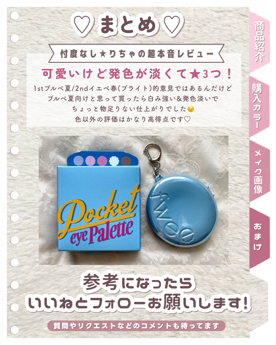 今更だけどフィーポケットアイパレット全色スウォッチ💗❤︎︎︎︎❤︎fweeフィーポケットアイパレット¥2,310❤︎︎︎︎❤︎キーリングが付いててカバンにつけたり👜できる可愛いフィーポケットアイパレット手のひらサイズで5色パレットしっとりした...