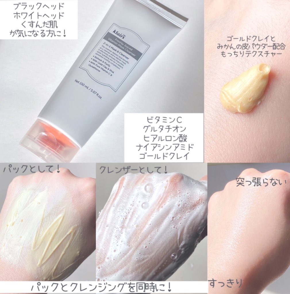 #PR#Klairsブラックヘッド/ホワイトヘッドが目立ち、くすみが気になる方におすすめ🤍#クレアス#ヒアルビタグルパッククレンザー🧁ビタミンC・グルタチオン・ナイアシンアミド含有で肌トーンケア🫧毛穴の奥までディープクレンジング☝🏻⸒⸒これ1...