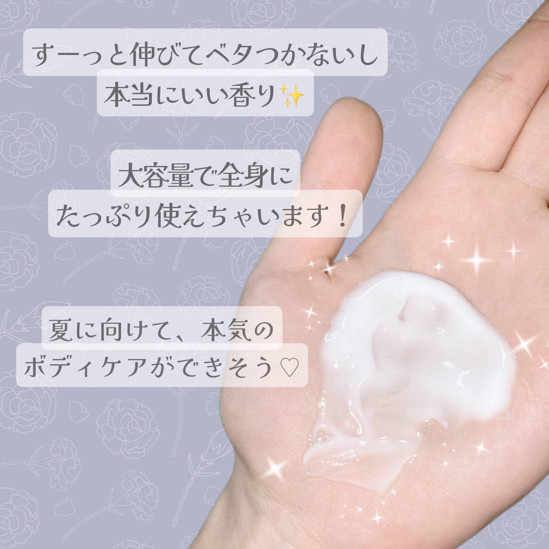 | 伸びがよくてベタつかずサラッとしたボディミルクです さっぱりしていて甘すぎない上品なフローラルの香りです | 詳細を見る | |