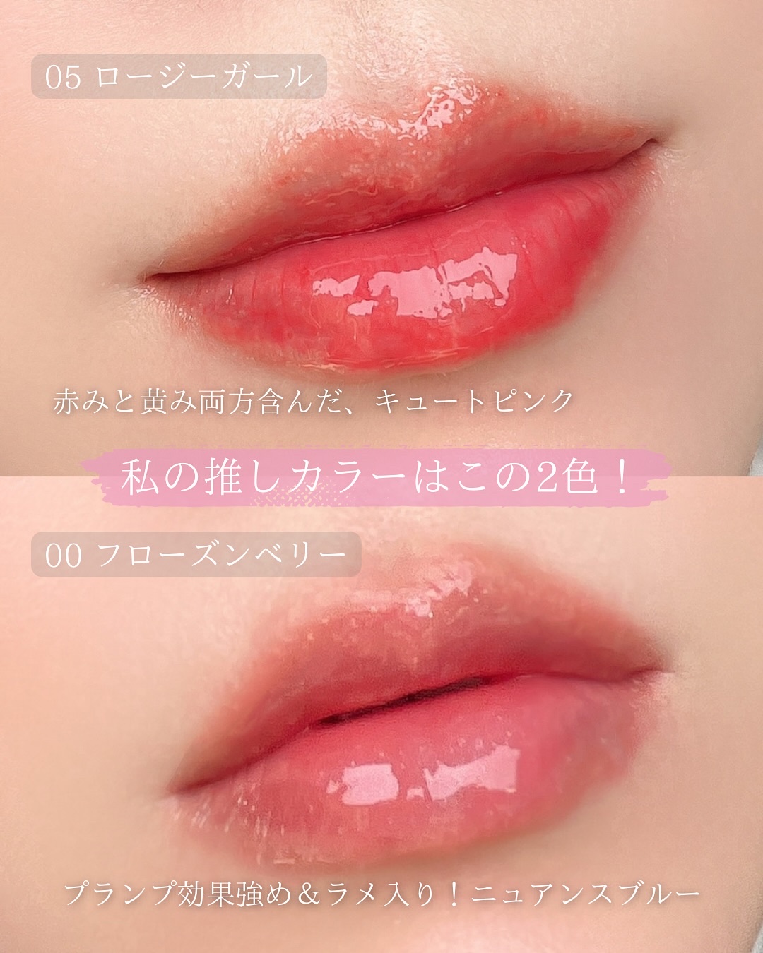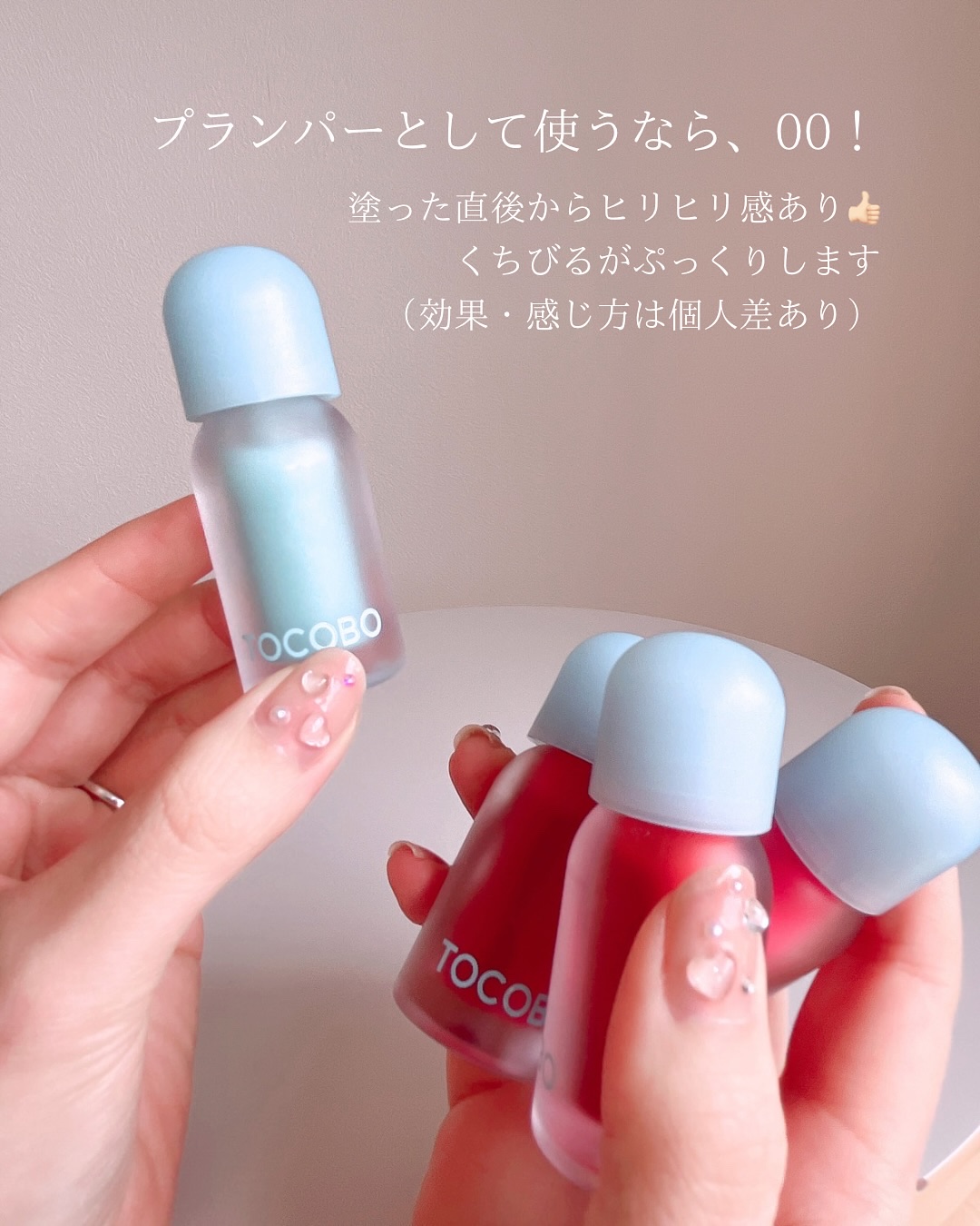 【TOCOBOのリップオイルから新作出たよ❣】うるちゅるガラス玉リップには絶対これ使って💕透け感がありながらツヤツヤしっとりで今大人気のリップ!日本限定色の14ピーチネクターと16アップルマンゴーに加えて、00フローズンベリーと05ロージーガ...