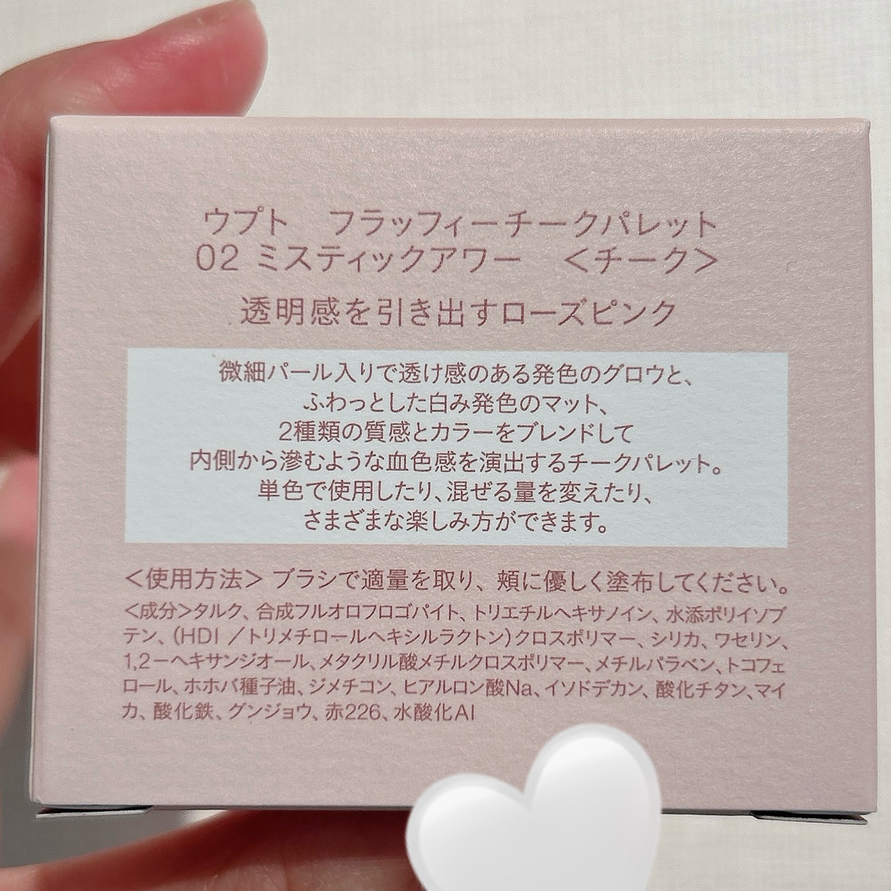 自然なツヤピンクが大人かわいい2色チーク🥰【Upt UptFLUFFYCHEEKPALETTE 02 mystichour ミスティックアワー】安達祐実さんプロデュースのUptのチークを初めて買いました🤍2色あったのですが、どちらも良すぎて悩...