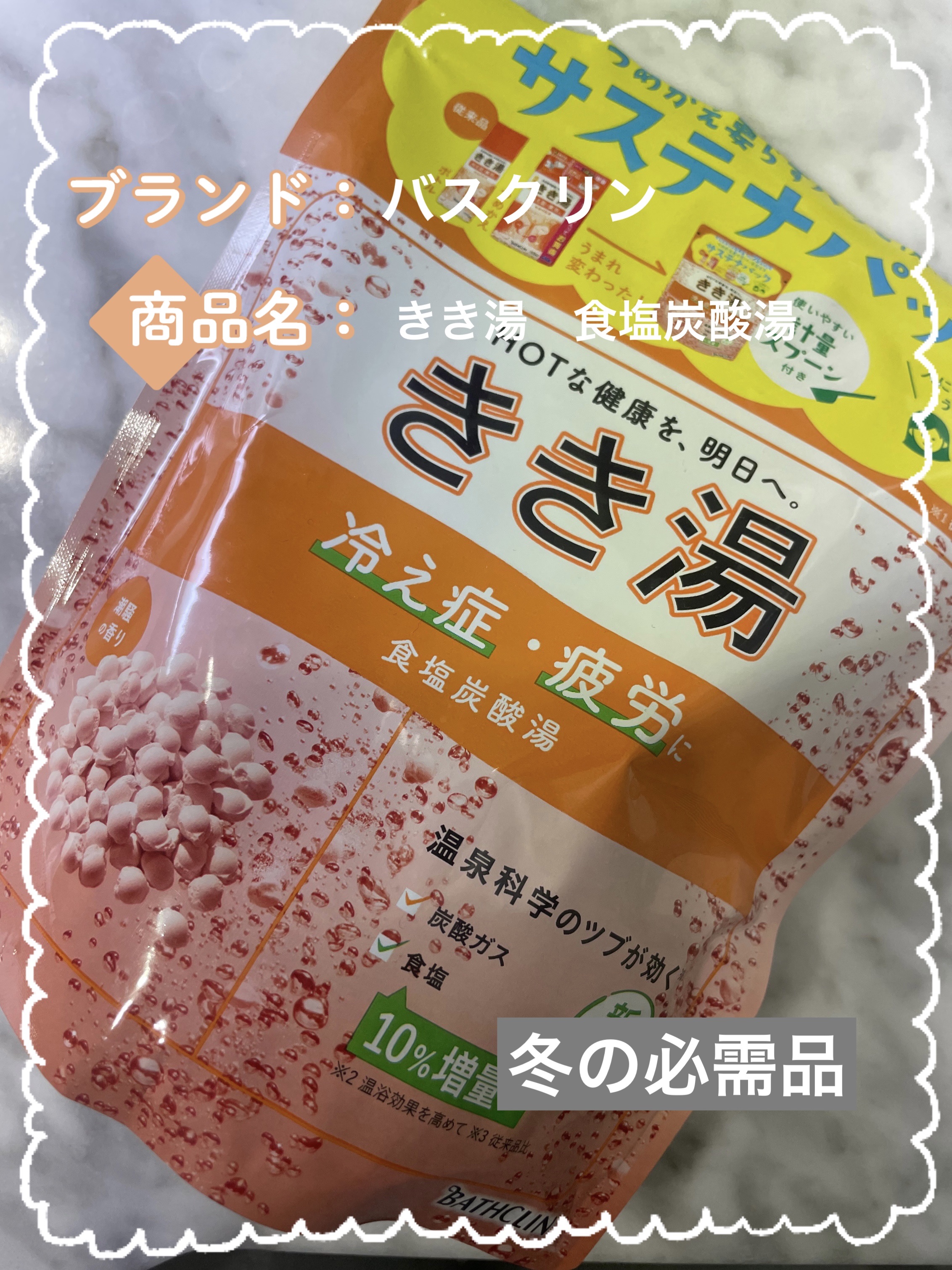 \冷えや疲れを感じる夜に🌙♨️/❁❁❁きき湯食塩炭酸湯(潮騒の香り)乳緑色のにごり湯サステナパックタイプ(360g)❁❁❁4月も後半を迎え、冷えと仕事の疲れがたまりがちな今こそ、バスタイムでセルフケアを!と思い見直し中です🌸最近お気に入りなの...