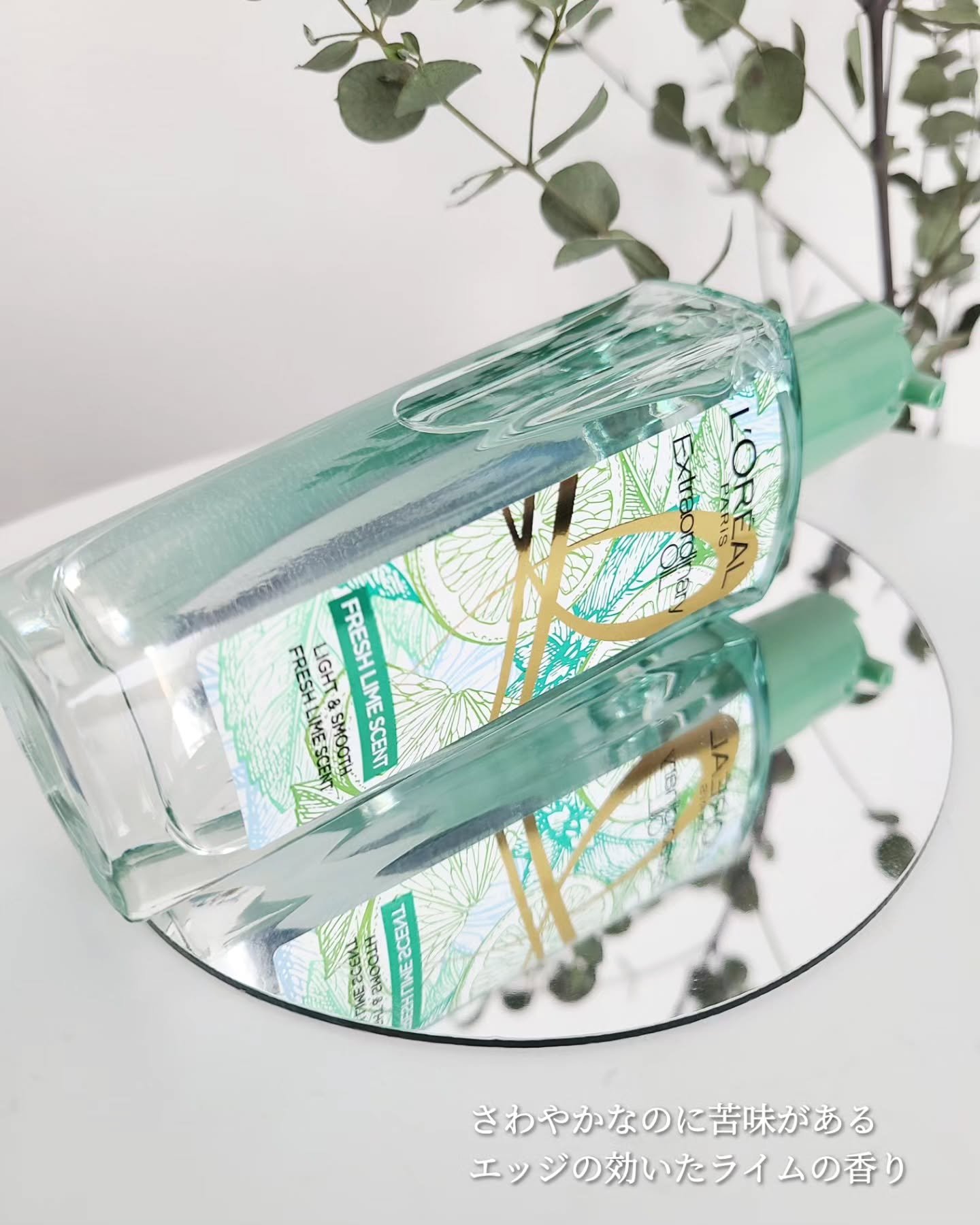 - #深呼吸したくなるヘアオイル ライムで、惹きつける。 髪そよぐたび、透きとおるツヤ感 ①大人気フレグランス、待望の定番化! かつて限定発売で大好評を博した爽やかなライムの香りが、多くのお客様からの熱いご要望にお応えして、ついに定番化。 ②みずみずしいライム&ミントの香り 付けた瞬間ふんわり香るライムとミントで、ヘアケアタイムを心地よく。 動くたびに、爽やかな香りが広がります。 ③ボタニカルオイル*¹配合、一日中²続く、さらツヤ髪へ パサつく髪1本1本を保護し、軽やかなうるおいが持続。 1日中*²サラサラ続くツヤ髪に。 *1 セイヨウハッカ油、レモン果皮油(全て保湿成分) *2 当社調べ。個人差があります。 2025年03月29日、定番化に伴い商品名が「ロレアル パリ エルセーヴ エクストラオーディナリー オイル フレッシュライムの香り」から「ロレアル パリ エクストラオーディナリー クリアライム」へ変更しました。
