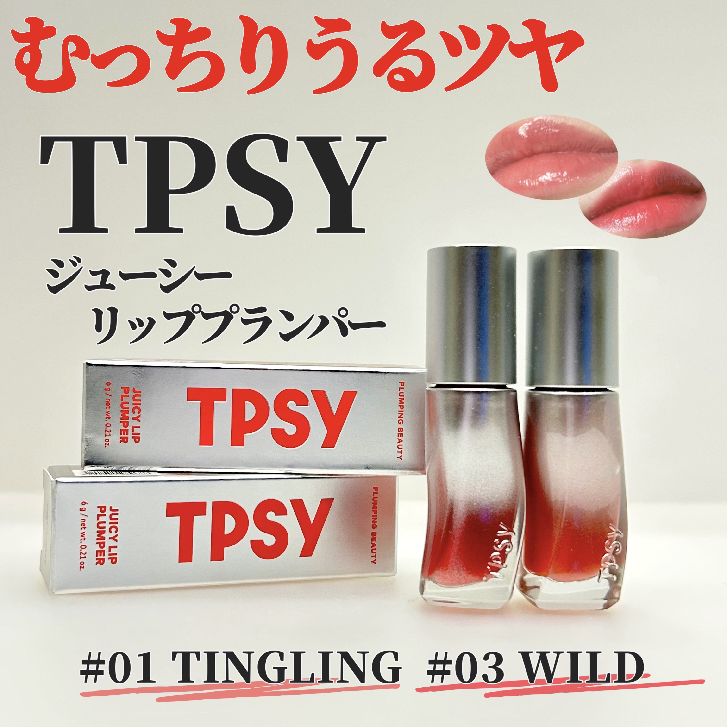.TPSYJUICYLIPPLUMPER#01TINGLING#03WILDデイリー使いにおすすめのリッププランパー。ほんのりスーッと感があるもののつけ始めのみなのでプランパーが得意でなくてもかなり使いやすいリップ。程よいツヤ感が魅力的なリッ...