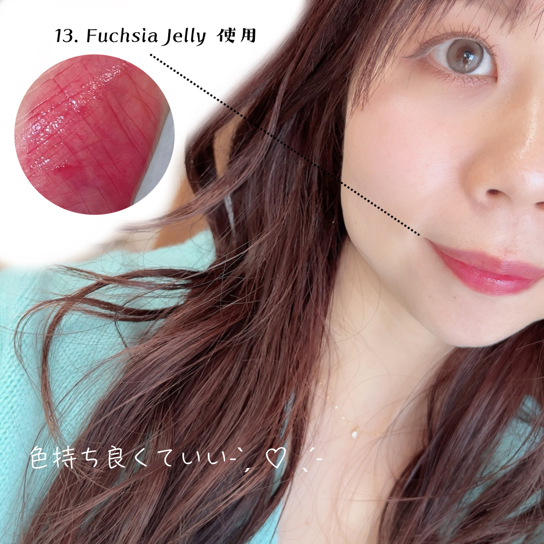 生き生きとした光沢と発色🍒潰した果肉カラー✨ 3号チリンチリン パーソナルカラー問わないピンクベージュが オフィス向きで使いやすかったよ🫶💓 4号ハッシュドチェリー パキッとしたブルベピンクなんだけど 顔が華やかに見えて大人っぽく完成❤️