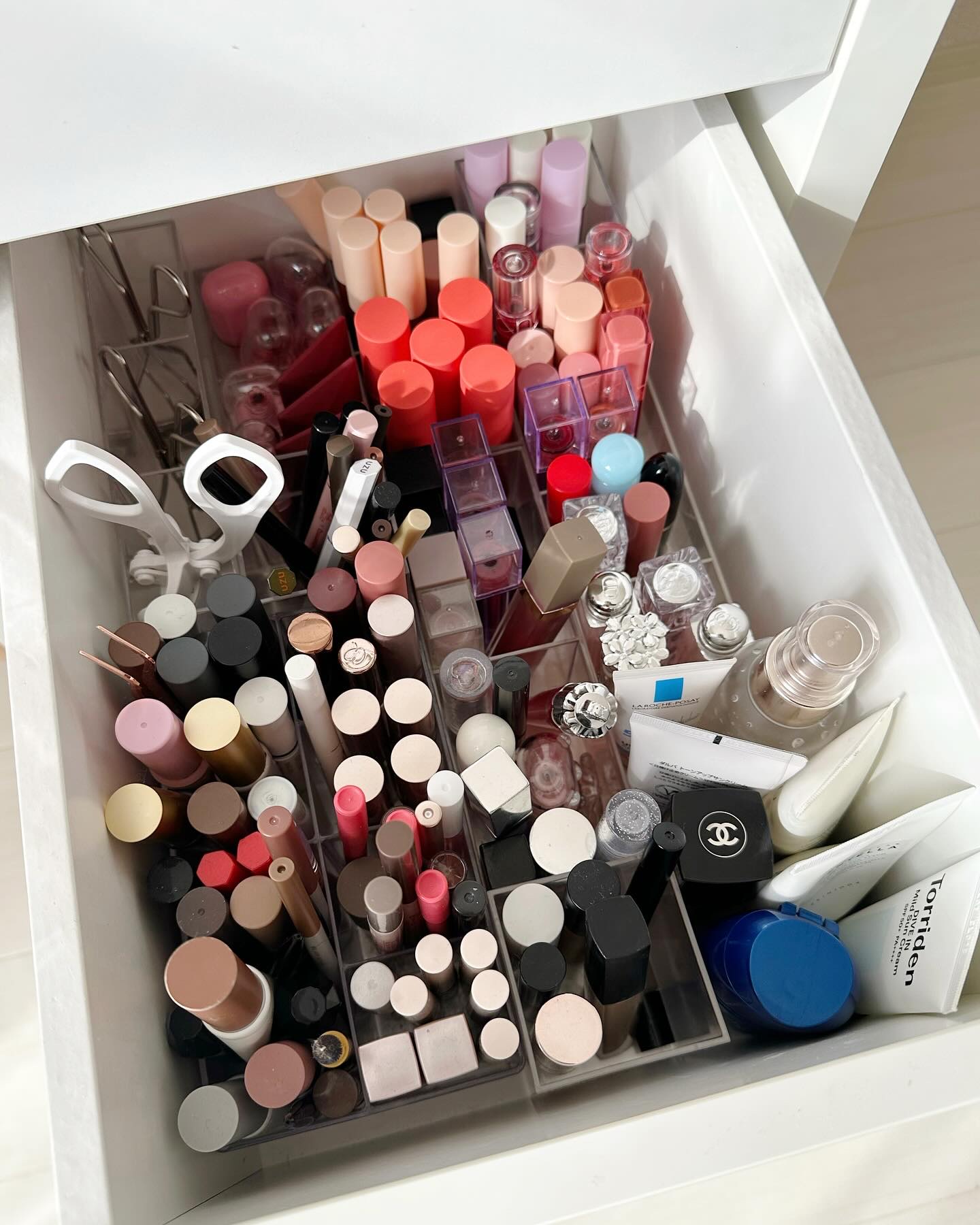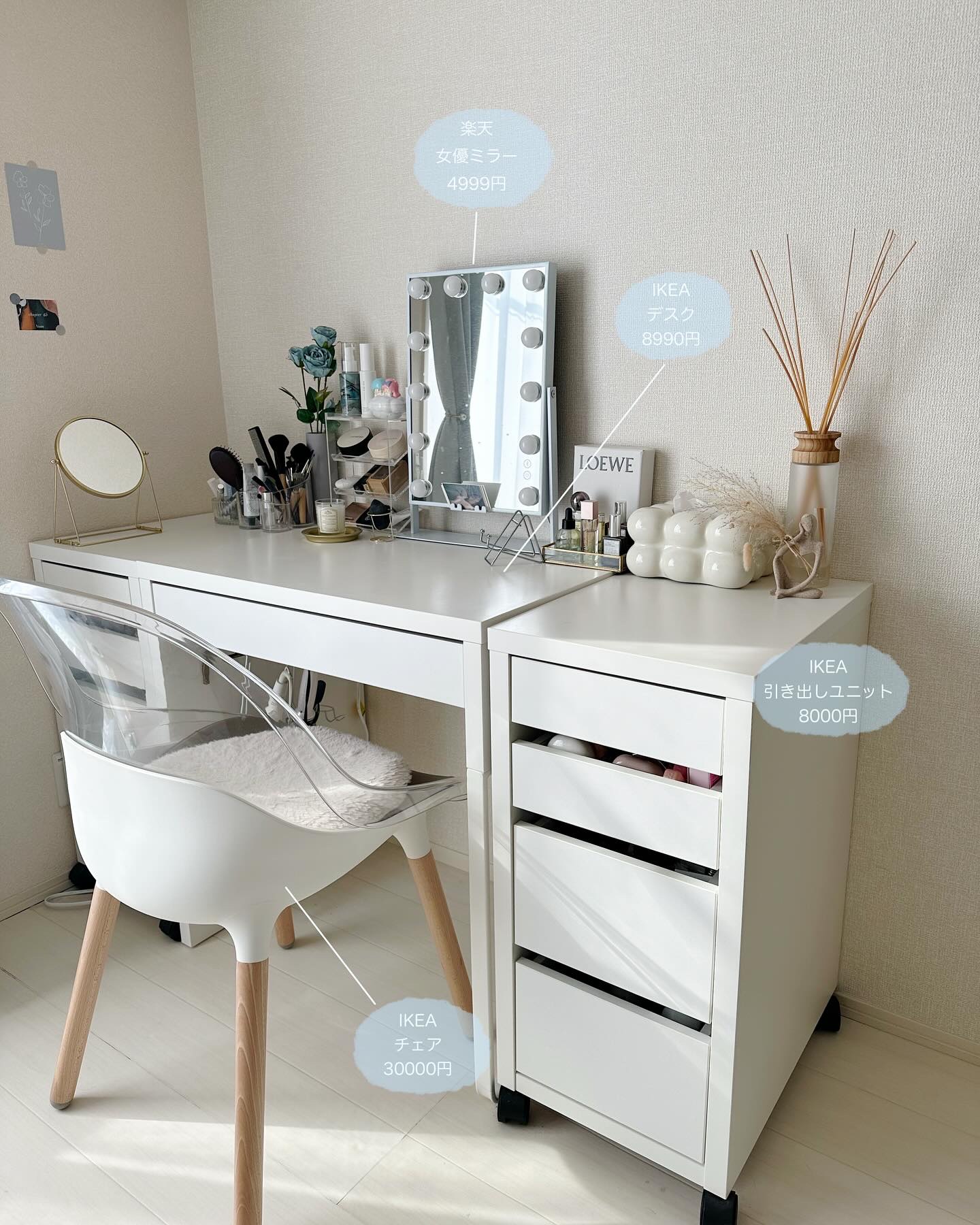 私のドレッサー紹介✨ディノスで購入!引き出しもいっぱいだけど、結局ワゴンにもスキンケアとかは置いてるギラギラしたものも飾れて最高でございます💖🥳#ドレッサー#コスメ収納#ディノス#家具#インテリア...