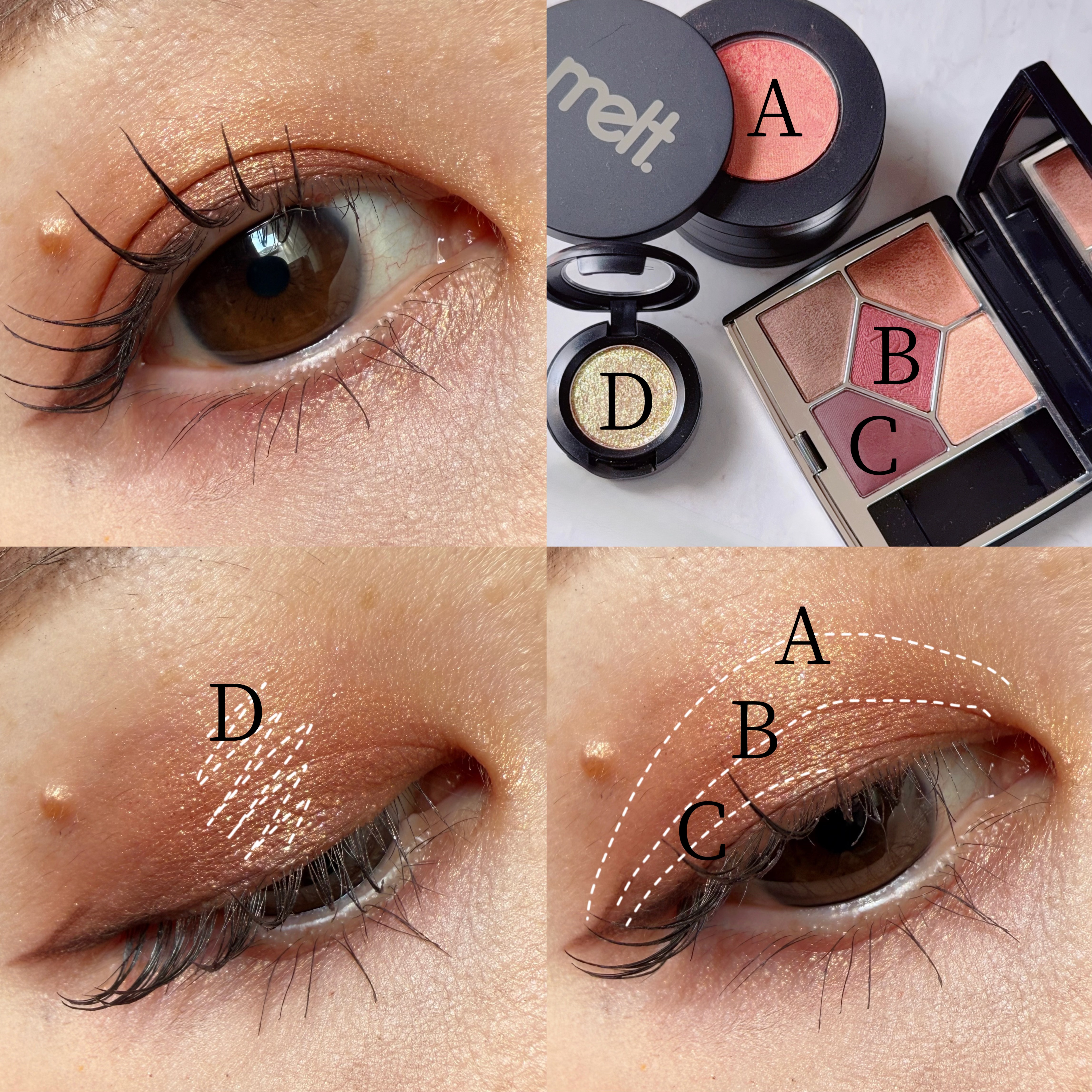 沈む夕日に照らされ地中海が黄金色に染まるゴールデンアワーがテーマの2022Summer 479 バヤデール 大好きなコーラル×赤み×ゴールドの組み合わせ いつかの夏コレ、シエナがラメでキラキラだと例えるならこちらはパール感✨ 779 リビエラ 赤みのあるブロンズパレット 右下だけマットなダークブラウンで年中使える万能カラー(どのパレットでも年中使うけどね🫠)