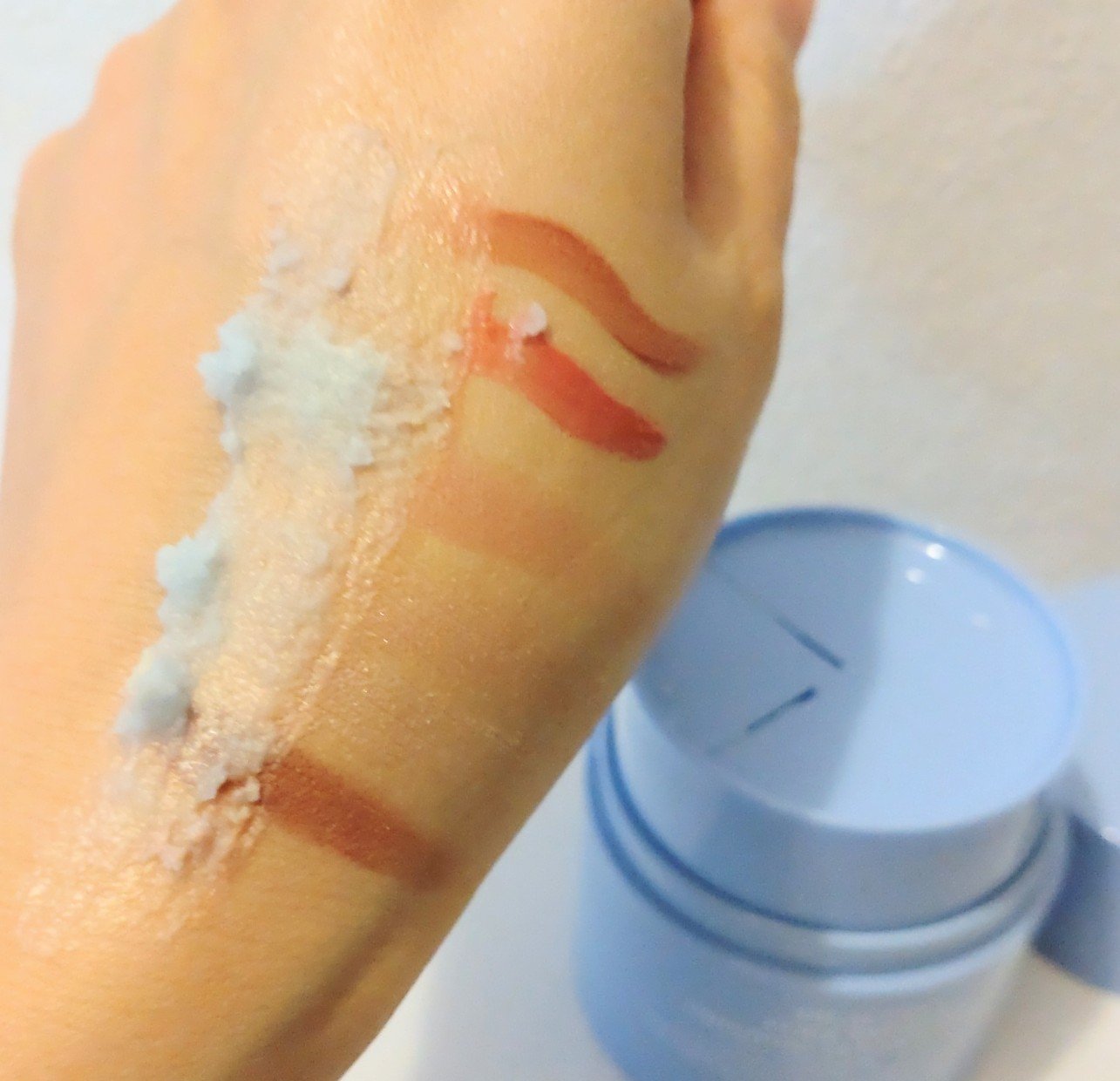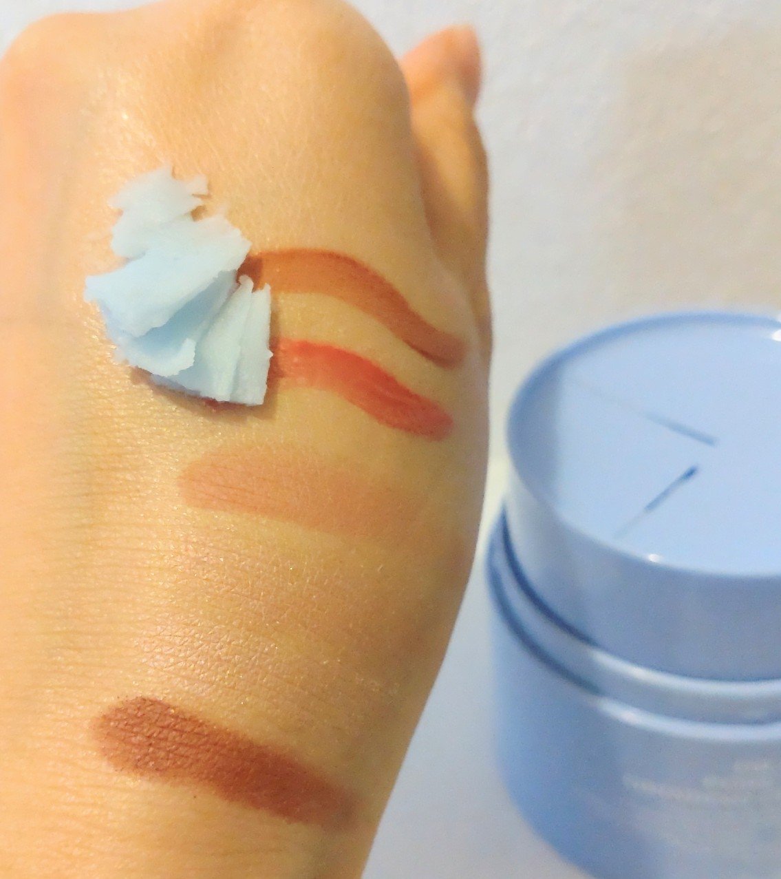 ほっこりする森の動物たちのイラストがかわいい♪ 乾燥小じわを目立たなくする※1 品 5 役の多機能クレンジングバーム クレイ×オイル×酵素で、しっかりメイクもするっとオフしながら乾燥による小じわを目立たない肌に! 毛穴ケア、保湿ケア、角質ケア、マッサージ、メイク落としの5つが、これ1つで◎ クレイ(赤泥)、ローズヒップオイルなど、こだわりの成分配合 ジャーのフタを開けると、ビックリ!! 赤色のスキンケアは初めて。 中には清潔に使えるスパチュラ付き。 そのスパチュラ山盛り一杯すくって、手にのせ、メイクした肌になじませていきます。 肌にのせると、少し固めのテクスチャーだったバームが、体温でとろっと溶けるので、軽くなじませるだけでOK! ふわっとフルーツフラワーティーの少し甘めの香りです♪ 洗い上がりも、しっとりした使い心地です◎