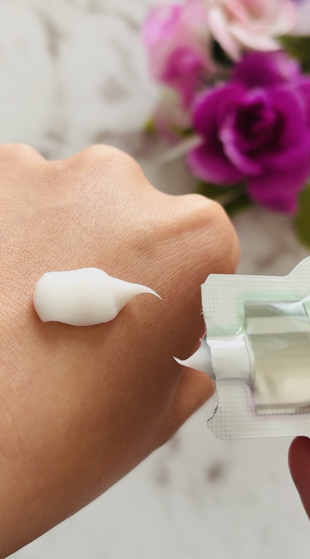 美容液と言うよりは乳液か、クリーム寄りのテクスチャーです。1プッシュ出してみてもこっくりした感じ。手に取って肌になじませてみたところとっても伸びがよいです。べたつくことがなくさらっとしていました!化粧水の後にこの美容液、となっていましたがク...