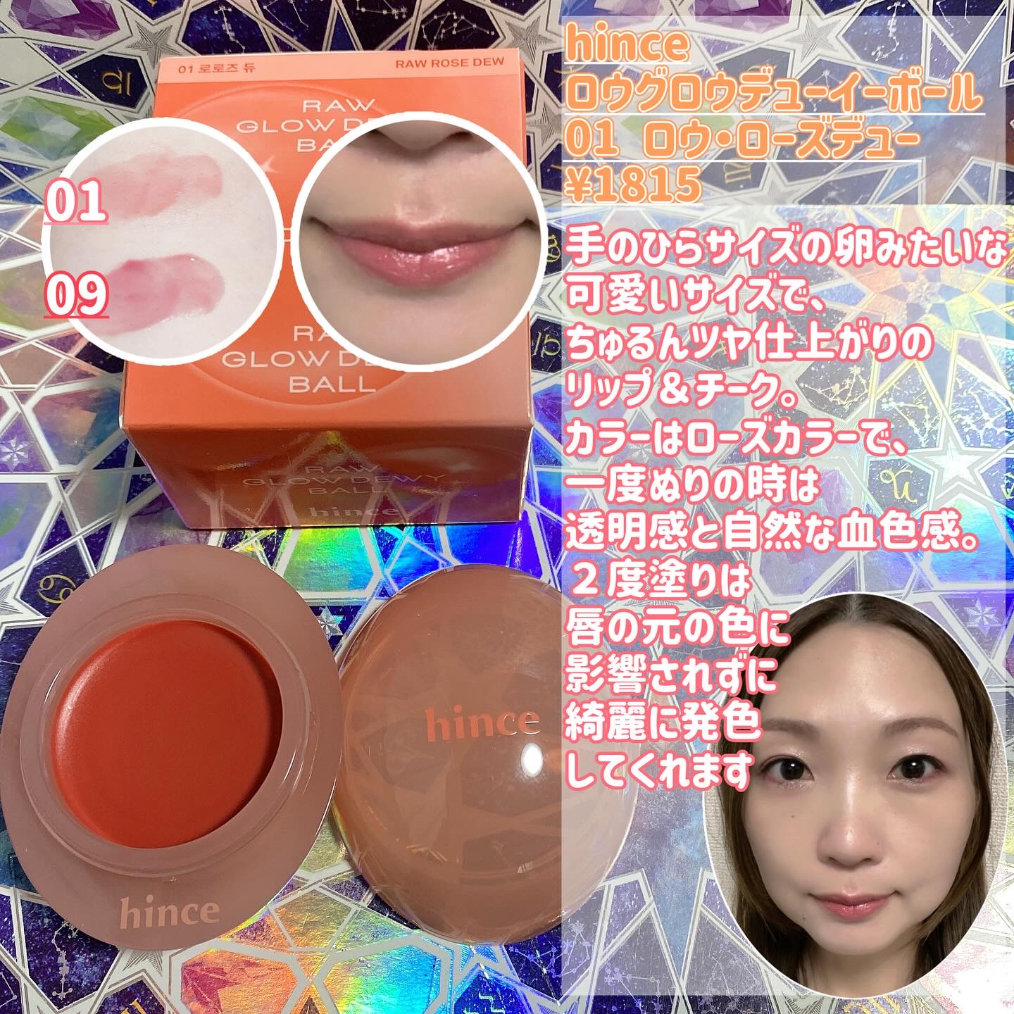 hinceさまからいただきました。リップにもチークにも使えるから簡単に統一感のあるメイクに✨コロンとしたまぁるいフォルムがとっても可愛い💖持ち歩きコスメとしても優秀なサイズ感です。しっとり感と上品なツヤ感が美しく、アラサーでも使いやすいよ🥰ブ...