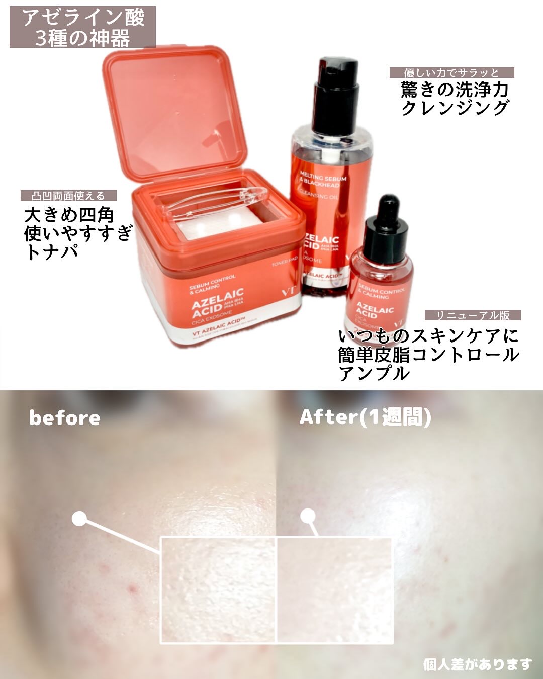 #PR\アゼライン酸三種の神器/VT様(@vtcosmetics_jp)の企画に当選してお試しさせて頂きました♡♡高純度99%のVTアゼライン酸✨️アゼライン酸は皮脂コントロールに働くことで肌トラブル予防やニキビ...