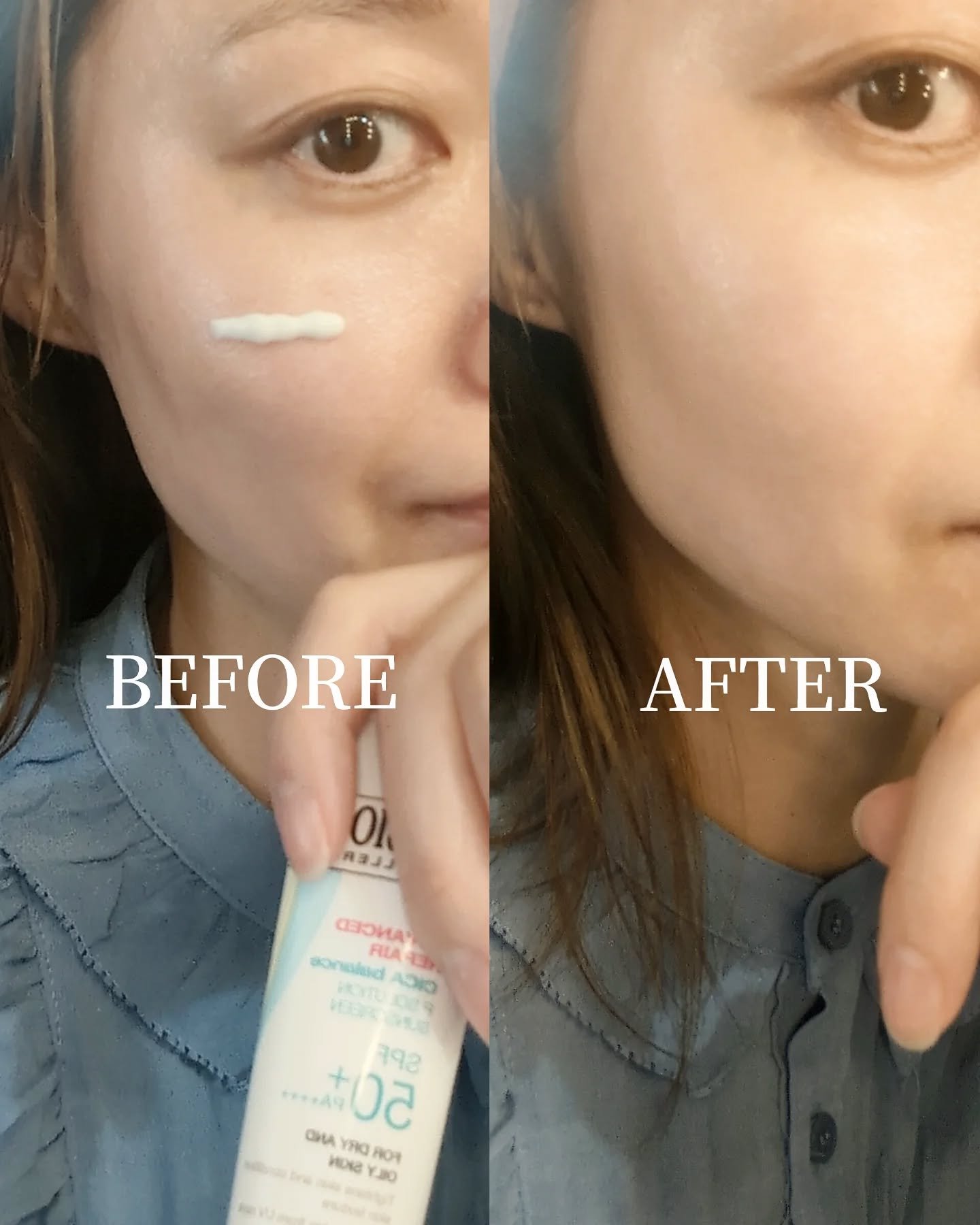 化粧水のあとの乳液にもなる日焼け止めで、私はスキンケアの最後に使っていますが「プチプラでいいの?」って思うぐらい良くて使いやすい😳👏 SPF50+/PA++++で日焼け止めとしての効果もバッチリ 美容液75%*なのでスキンケア効果が高くて、肌荒れをケアしながら潤いキープ つや肌おしろい乳液なのでトレンドのセミマット肌が簡単に作れます✨ 手に出してみると結構濃い目のイエローのクリーム 顔に伸ばすと自然にトーンアップしながら肌の色むらをカバーしてくれてすぐにベタつきも気になりませんでした
