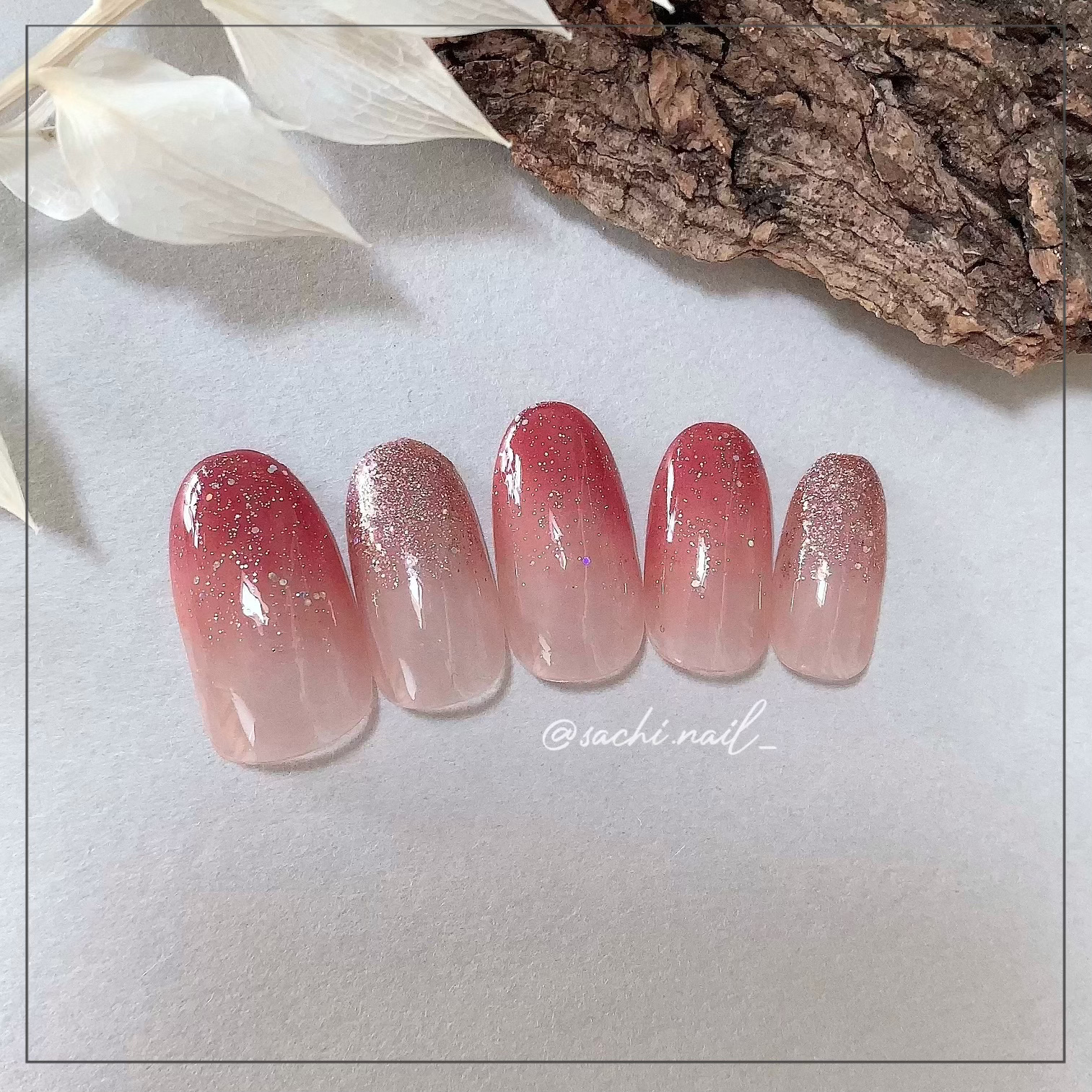 ワンカラーでも指ごとに色を変えるだけでオシャレに見えます💕 画像のようにゴールドラインとストーンを少し足すだけで華やかさがアップ🥰 何度かご紹介したことのあるスポンジで作るグラデーションです✨ スポンジを使うことで境目が綺麗に馴染んでくれます💕 アルミホイルの上でブラウンとトップコートを1:1くらいで混ぜたものを、トップコートのハケに取って3箇所に塗るだけ👌 事前に混ぜたものを塗ることで、爪の上でぼかすより簡単に出来ます💕 ベースカラーが乾く前に点置きしてぼかすことで綺麗にぼかせます✨ スピードが大事なので、使うポリッシュのキャップは全て開けておきましょう😊 天然石のラインはガタガタの方がより天然石っぽく見えるので、ラインを描くのが苦手な方でも大丈夫🙆♀️ 難しそうに見えて、やってみると意外と簡単に出来ます♡