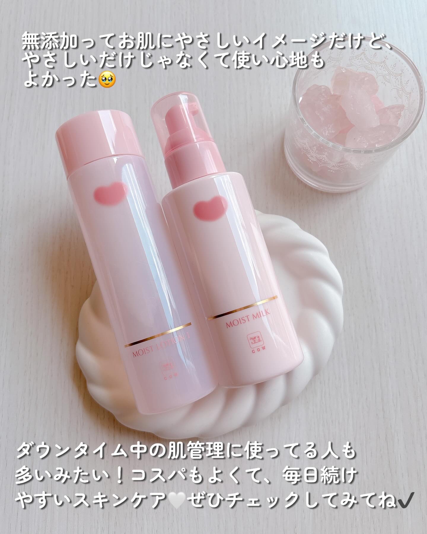 牛乳石鹸の会社から出ている「カウブランド無添加」のスキンケアシリーズで白湯ケアしてみる? 季節の変わり目にゆらぐ肌やダウンタイム後の肌管理時など、やさしく肌をいたわりたい日のシンプルスキンケア=「白湯ケア」って言うんだって😳 化粧水はみずみずしい使用感なのに、しっとりとした使い心地◎ 乳液も伸びが良いのにしっかりと保湿されている感じがするよ!