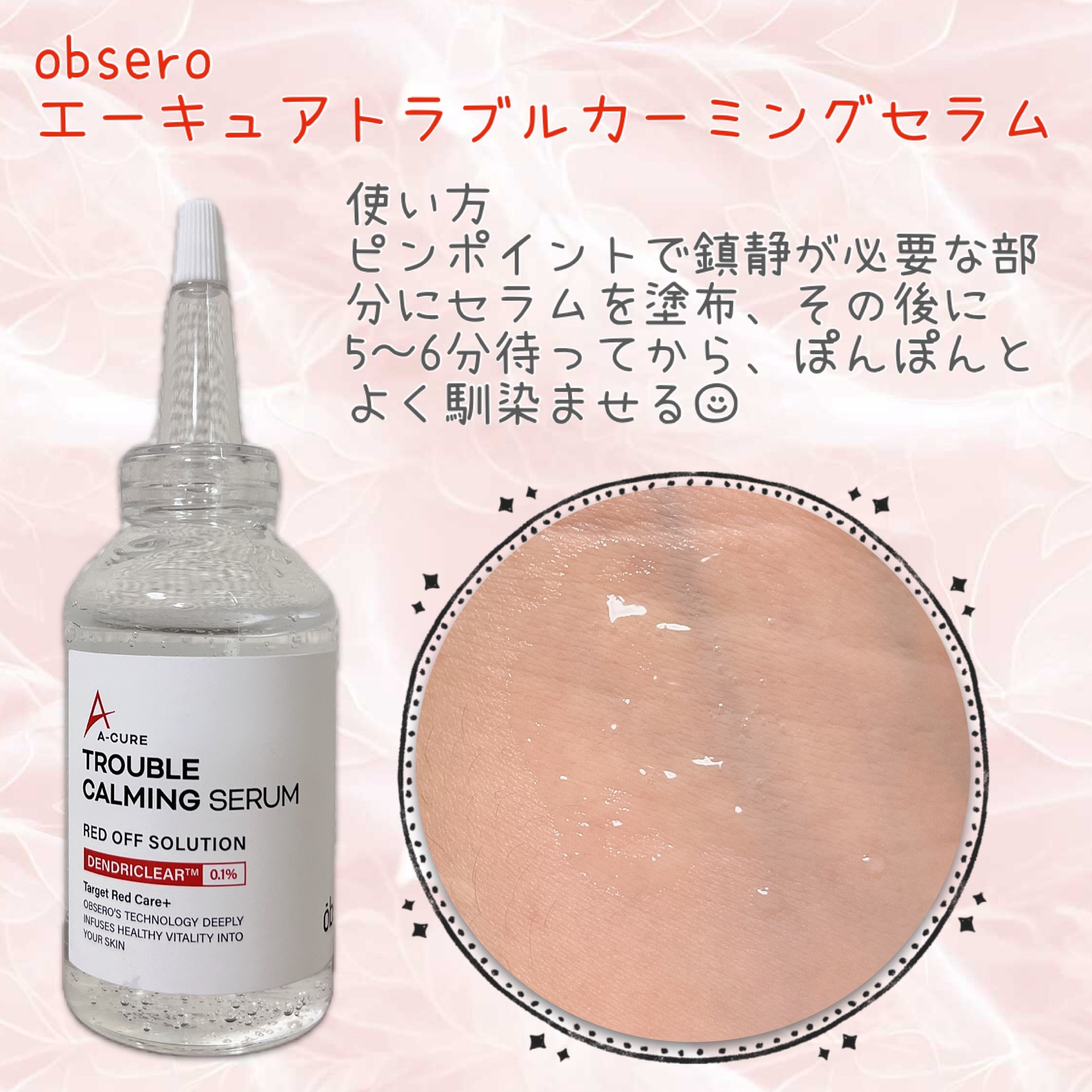 **インスタにてobsero(@obsero_jp)様より提供いただきました!ありがとうございます🙇.✔️obseroオブセロエーキュアトラブルカーミングセラム.オブセロ特許成分「TECA.C」(ツボクサエキスよりも優れた鎮静特化成分)が7%...