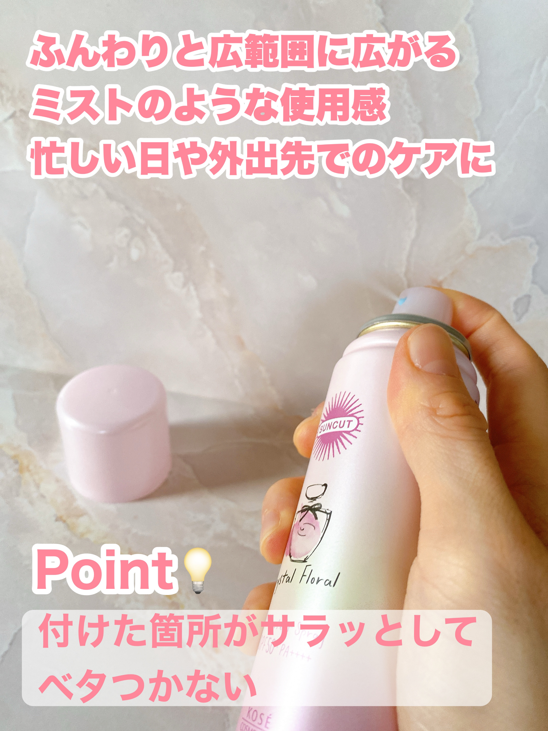 サンカットさまからいただきましたサンカット フレグランスUVスプレークリスタルフローラルの香り髪・顔・からだ全身に使えるサンカットのフレグランスUVスプレーが優秀…!SPF50+,PA++++でウォータープルーフタイプなのに石けんオフOK💗ク...