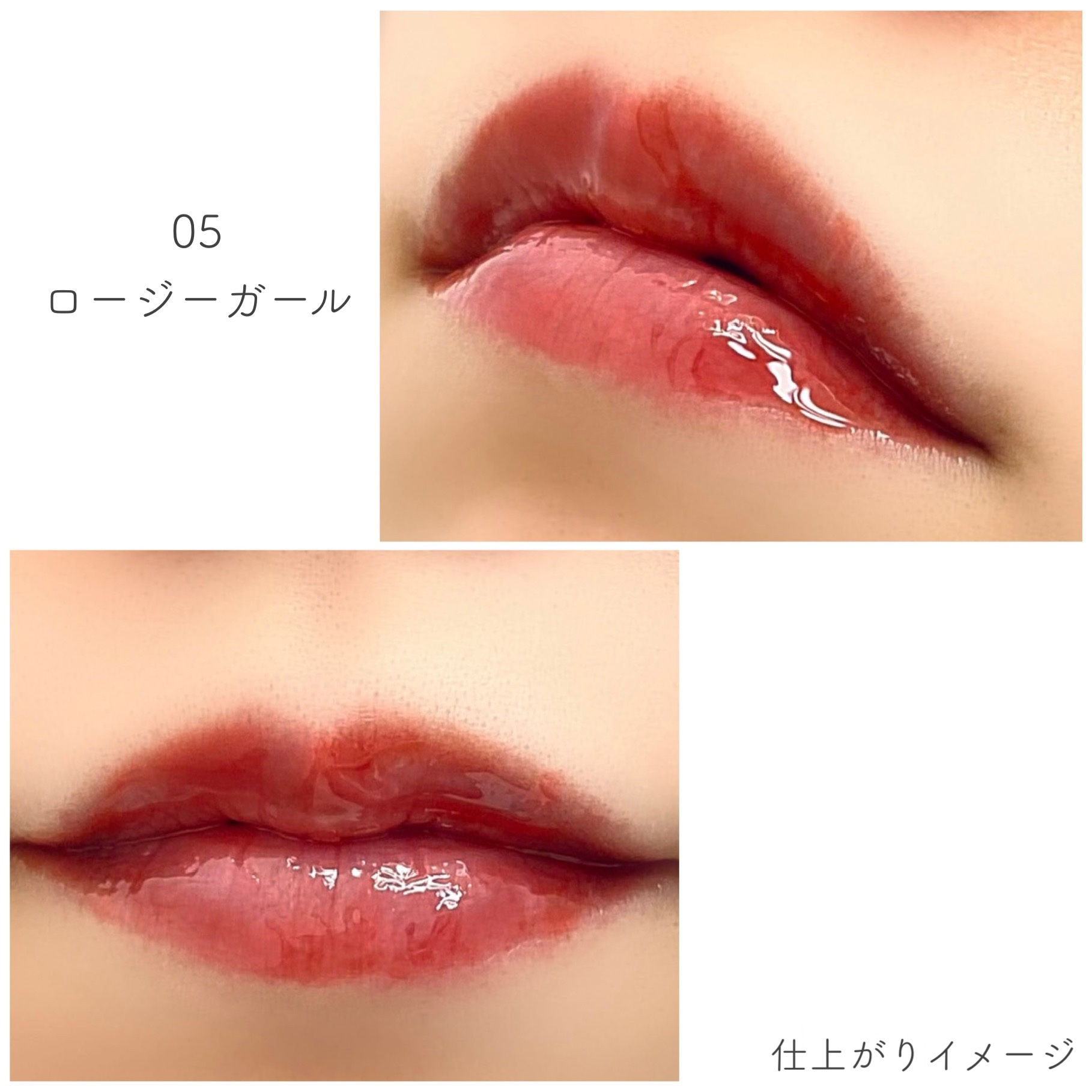 まるでクリオネ⁈ 艶やかで透明感*のある仕上がりが魅力のティント みずみずしくて軽いつけ心地 35%配合した保湿成分(加水分解ヒアルロン酸、BG、グリセリン、(水を含む) なめらかで透明な膜をはり、唇の乾燥を防いでくれるそう。 水彩画からインスパイアされた、水に滲んだようなクリア発色 くすんだカラーも使いやすく 重ね塗りしても重たい仕上がりにならず発色が楽しめます◎