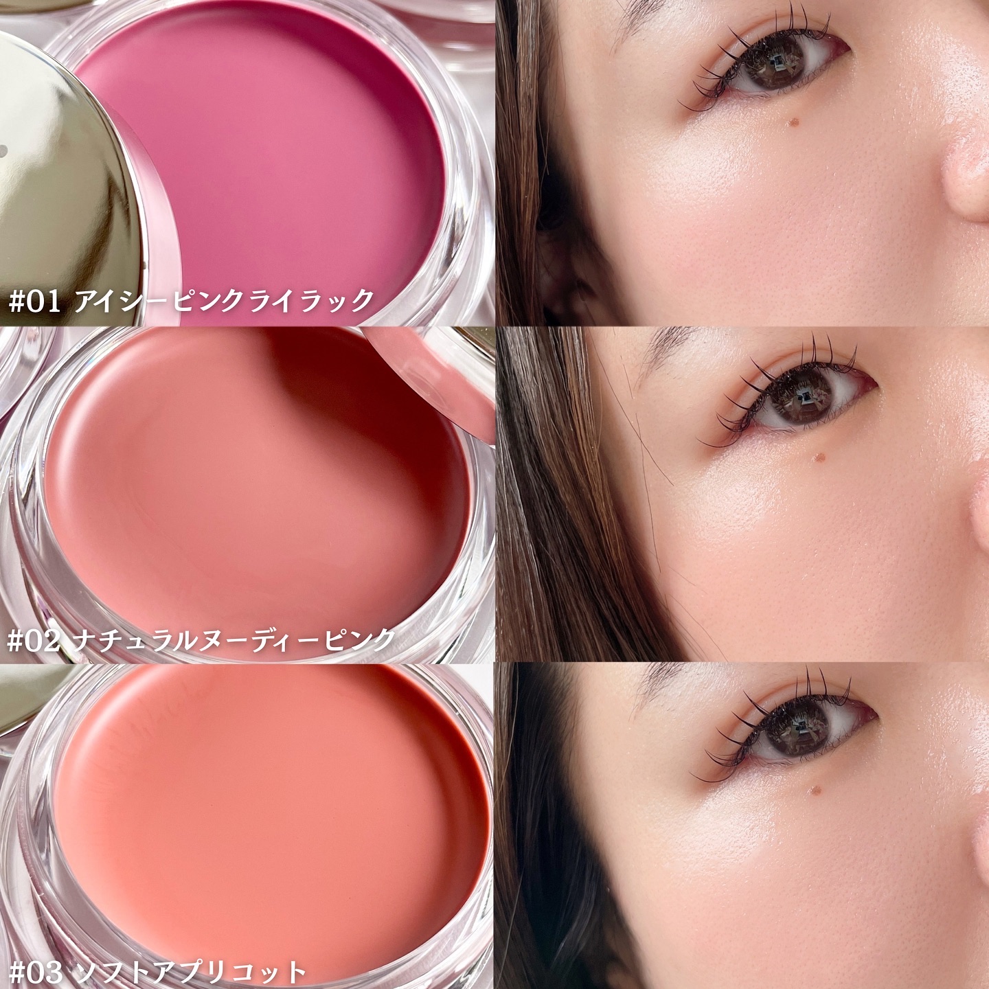 - 数量限定発売 先行発売日:2025年3月1日 ロフトにて発売 内側からにじむようなツヤと血色感のある肌に [POINT 1] 内側からにじむようなヘルシーなツヤ感 手に触れた瞬間なめらかに溶けるクリームバームタイプで、 自分の肌のようなヘルシーなツヤ感を表現 [POINT 2] 素肌に心地よく馴染む質感 [POINT 3] ベースを崩さず、発色をそのままキープ ベースメイクの上から塗ってもよれにくく肌にしっかり密着! 塗った瞬間の発色を長時間キープ