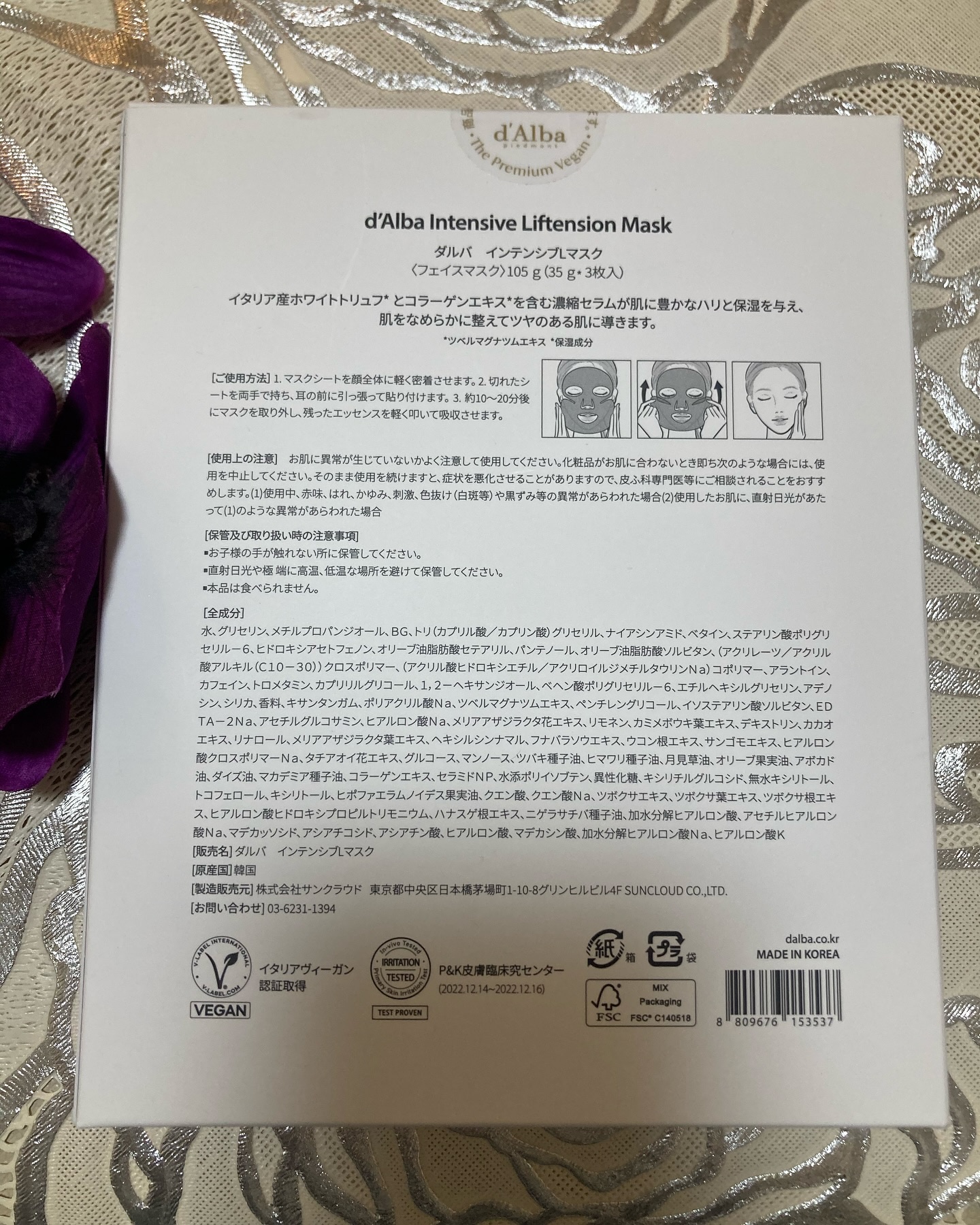 ダルバの2種類のマスクダルバホワイトトリュフナリシングトリートメントマスクインテンシブリフテンションマスクをいただきました!⬛︎ホワイトトリュフナリシングトリートメントマスク上品な香り。液はヒタヒタ。もちっとした素材のシートで肌に密着しやすい...