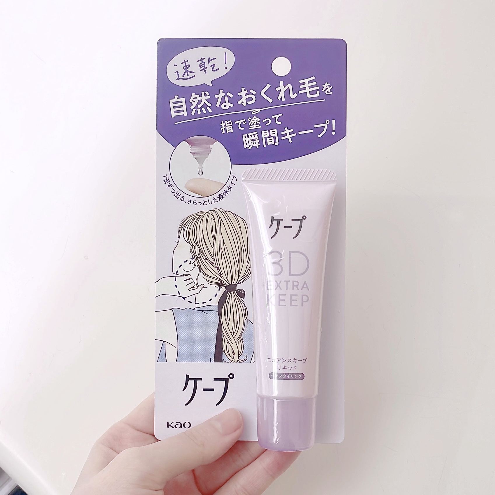 \お気に入りヘアケア紹介/▷ケープ3Dエクストラキープニュアンスキープリキッドスプレーしにくいおくれ毛には指で塗るケープを🍒速乾3Dキープ処方のヘアスプレーのようなキープ力をもつ速乾性の高いさらっとした液体タイプで崩れやすい繊細なおくれ毛や前...