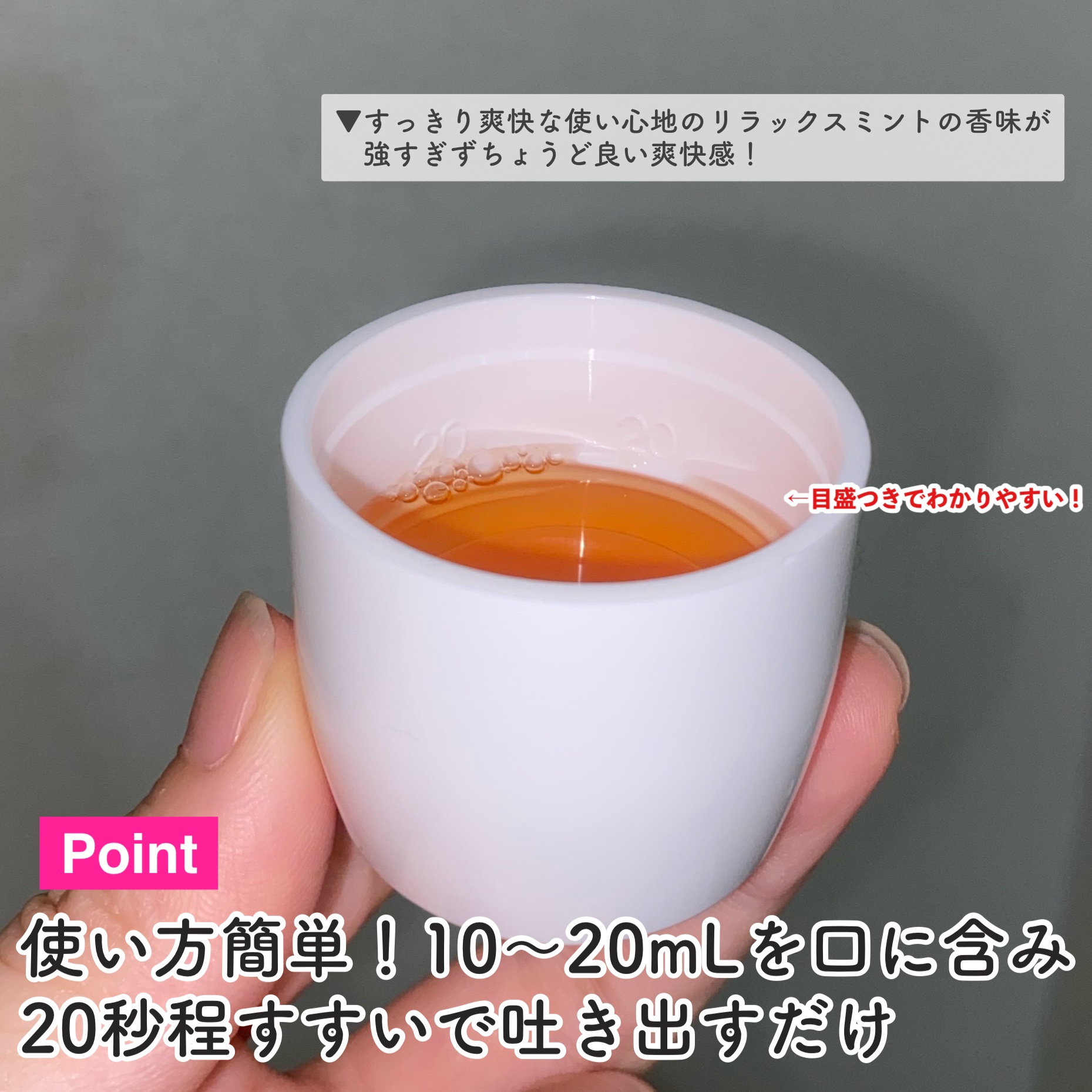 | 20秒ほどぐちゅぐちゅするだけ!時間の経過で口の中が嫌な感じになるのを防ぎます。 | 詳細を見る |