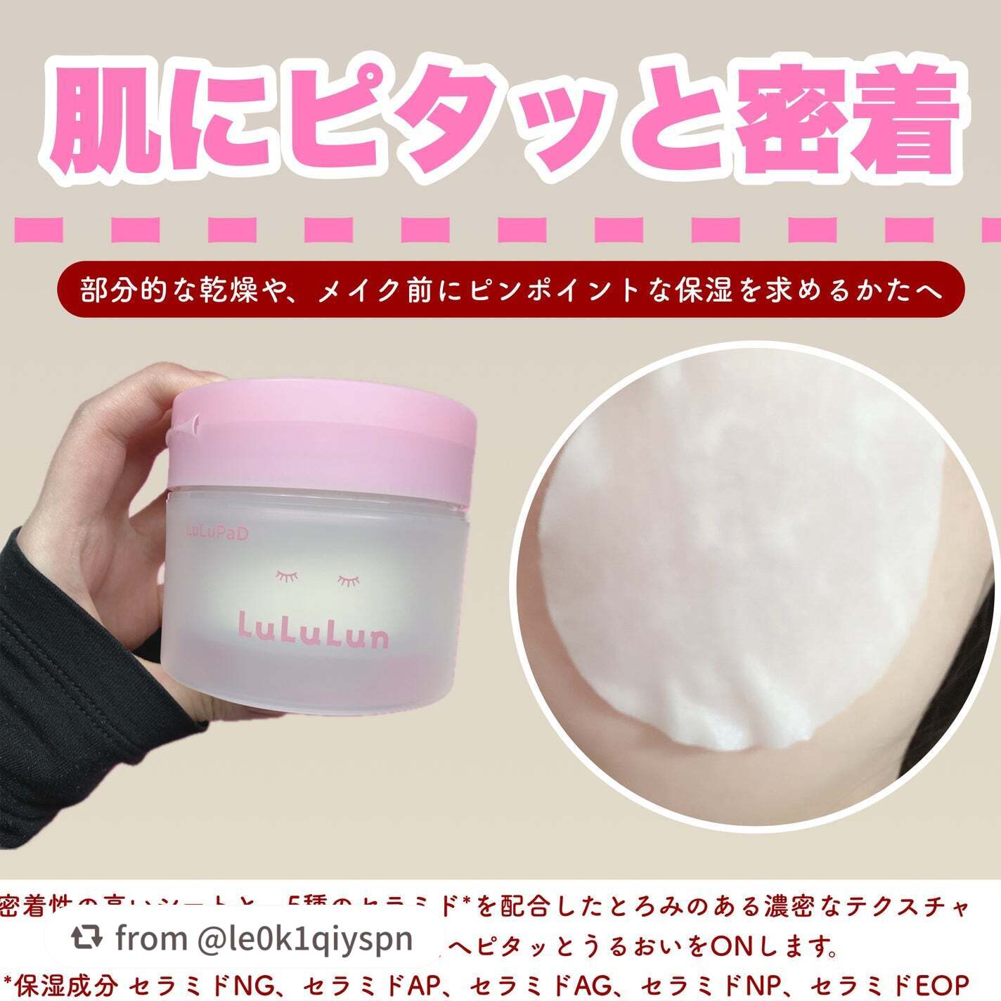 ルルルンさんから、「ルルルントナーパッドうるおいON」をいただきました✨【商品説明】部分的な乾燥や、メイク前にピンポイントな保湿を求めるかたへ。密着性の高いシートと、5種のセラミド*を配合したとろみのある濃密なテクスチャーを採用し、気になる箇...