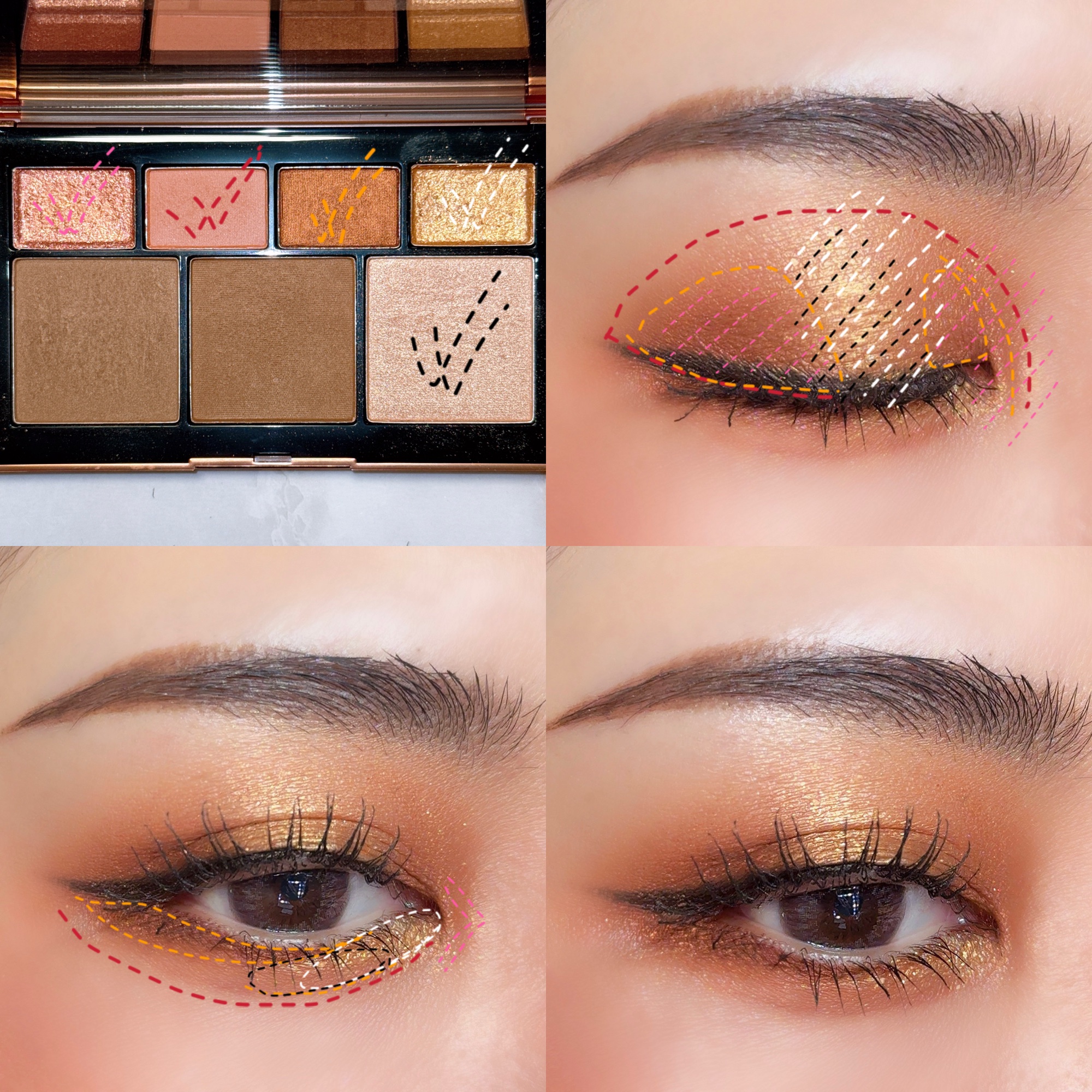 オレンジっぽいアイシャドウとゴールドラメが夏らしくて可愛いですね💗 華やかで素敵です✨