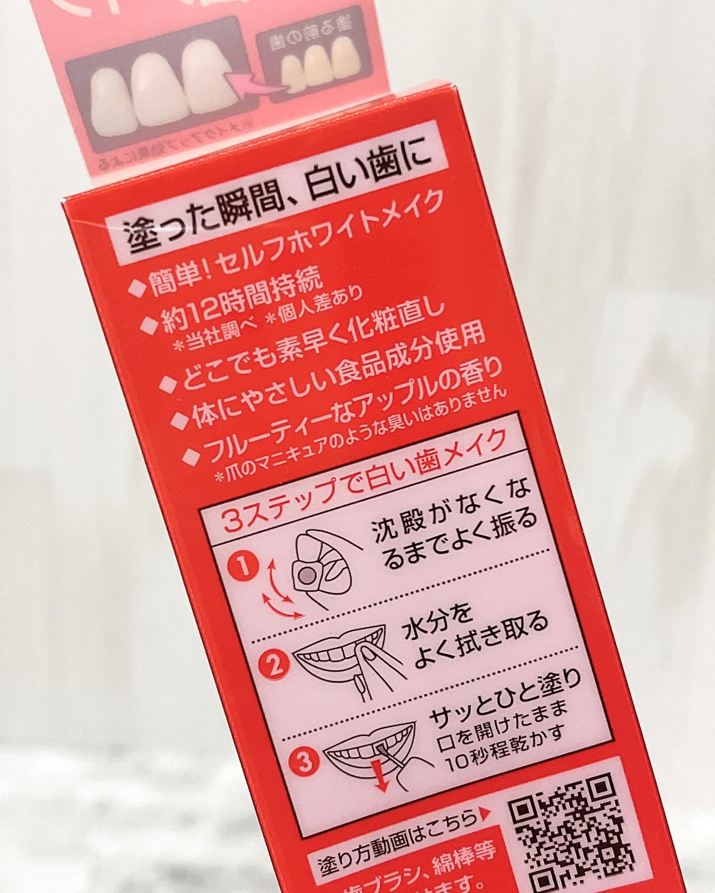 - *スノー(ツヤのある真っ白な歯に) 〇歯に白い液剤を塗ることで、誰でも簡単に白い歯にメイク 〇塗って約10秒で速乾し、長時間白さが持続。食事をしても剥がれにくい 〇口紅同様、塗り直しも可能 〇義歯、銀歯、インプラントにも使用可能 〇主成分はサプリメントのカプセルにも使用されている食品使用の天然樹脂成分 〇ブラッシング(歯磨き)で落とすことができる 【リニューアルポイント】 〇部分的に剥がれた場合は、そのまま重ね塗りが可能 〇爽やかでフルーティーなグリーンアップルの香りを採用 〇パッケージをSDGsの観点から、環境に配慮した再生ペットボトルに変更 〇塗り方のポイントをわかりやすく解説する新動画、新説明書のご提供