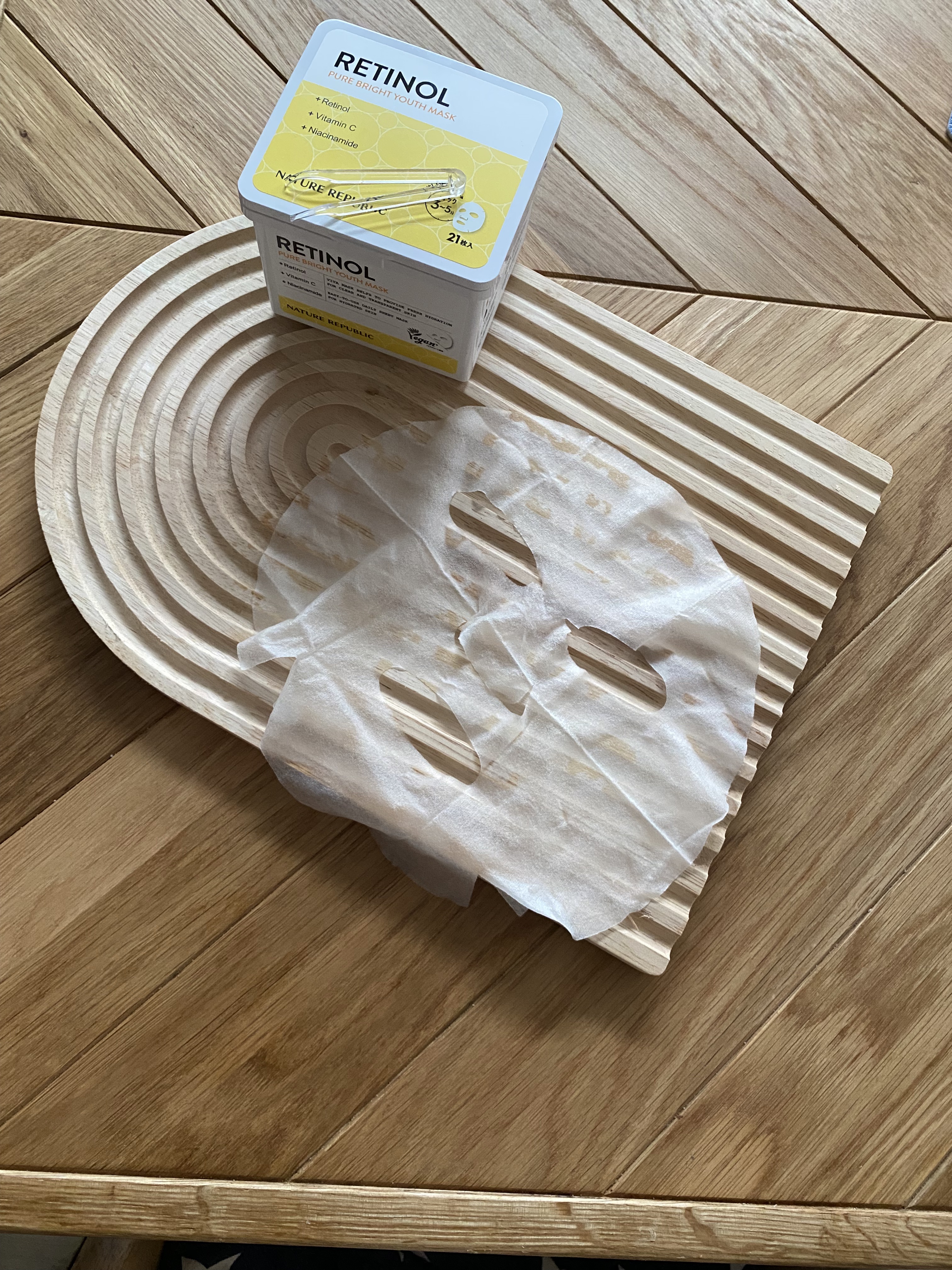 ネイチャーリパブリックのキューブマスク🟨・レチノールピュアブライトユースシートマスクヴィーガンのシートマスクにウォータータイプの美容液がヒタヒタに染み込んでいて、角質層のすみずみまでぐんぐん浸透💛くすんだお肌もワントーンアップしました✨レチノ...