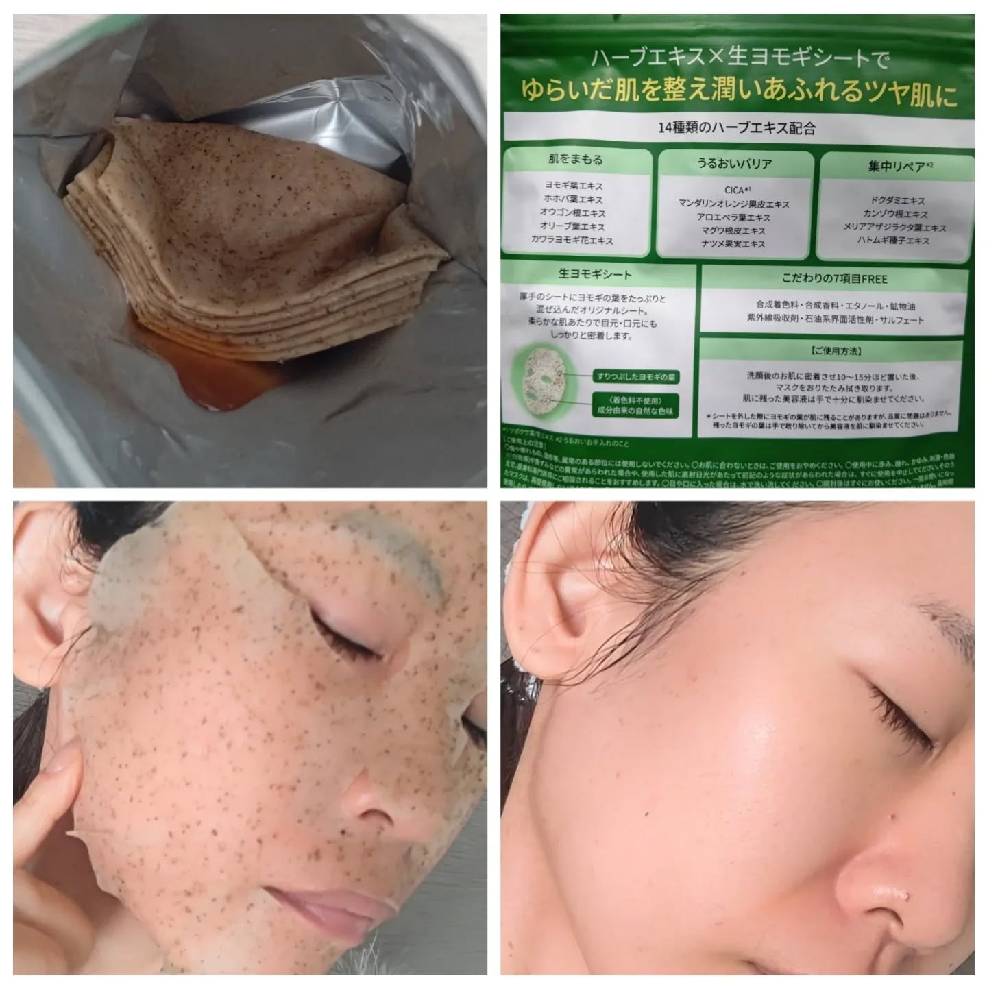- ハーブエキス*×生ヨモギ*シートでゆらぎがちな肌を整え潤いあるツヤ肌へ。 乾燥や肌荒れを防いで肌を整える自然由来のハーブエキスを14種類配合。 また保湿や肌ひきしめ・整肌作用が期待できることからハーブの女王とも呼ばれるヨモギの葉をすりつぶし、たっぷりと混ぜ込んだオリジナルシートとともに乱れやすい肌環境を整え、潤いたっぷりと補給します。 *保湿成分