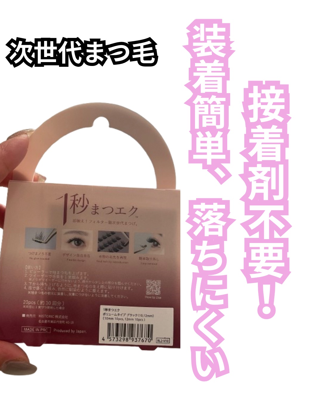 - のり不要。そのまま1秒装着。 高品質の毛束を簡単に装着可能。肌に優しい使い心地で手軽に装着できる。自然な見た目と多彩なデザインが魅力的。 ◎こんなシチュエーションに ・手軽に目元の印象を変えたい ・部分的にボリュームが欲しい ・軽いつけまつ毛を使いたい ・自然な仕上がりにしたい ◎1秒まつエク3つの特徴 ・接着剤不要の簡単1秒装着 ・3種類のスタイル(ナチュラル、クラウン、ボリューム)でデザイン自由自在 ・本物の毛先を再現