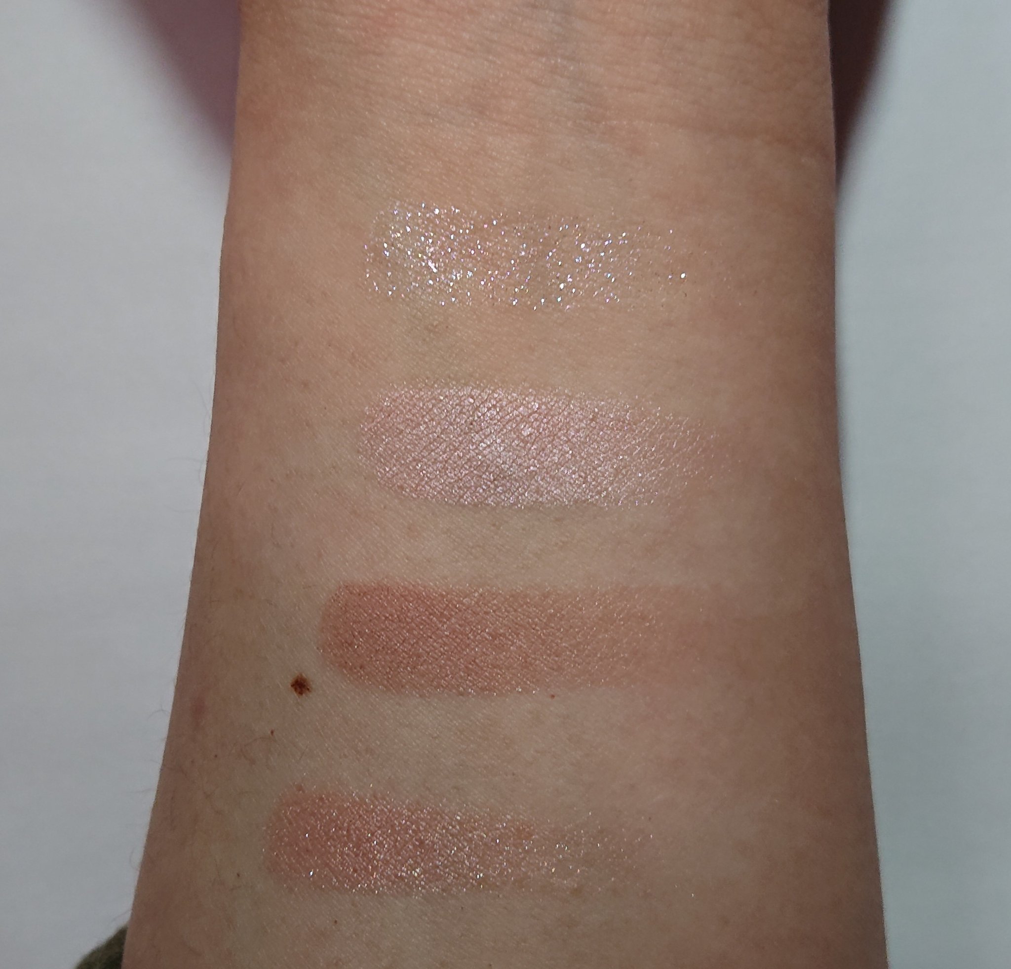 01シンプリーピンク05ラステットローズ柔らかめの細かくて軽い粉質です。ラメ・グリッダーもしっとりしていて、柔らかいです。粉飛びはしにくく、ラメは多少飛びますが、酷くはないかなと思いました。発色は色味によって、薄づきだったり濃い発色だったりと...